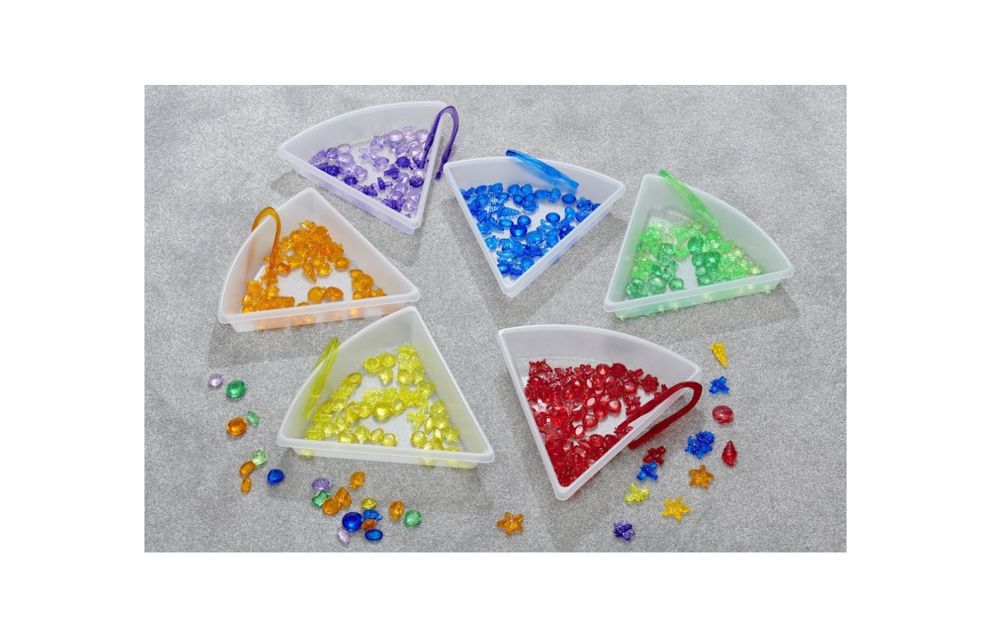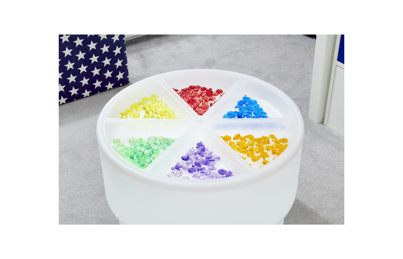Semi-translucent trays made of smooth and durable polypropylene, designed for the light up discovery table or light up water table or for free play on a table or on the floor.