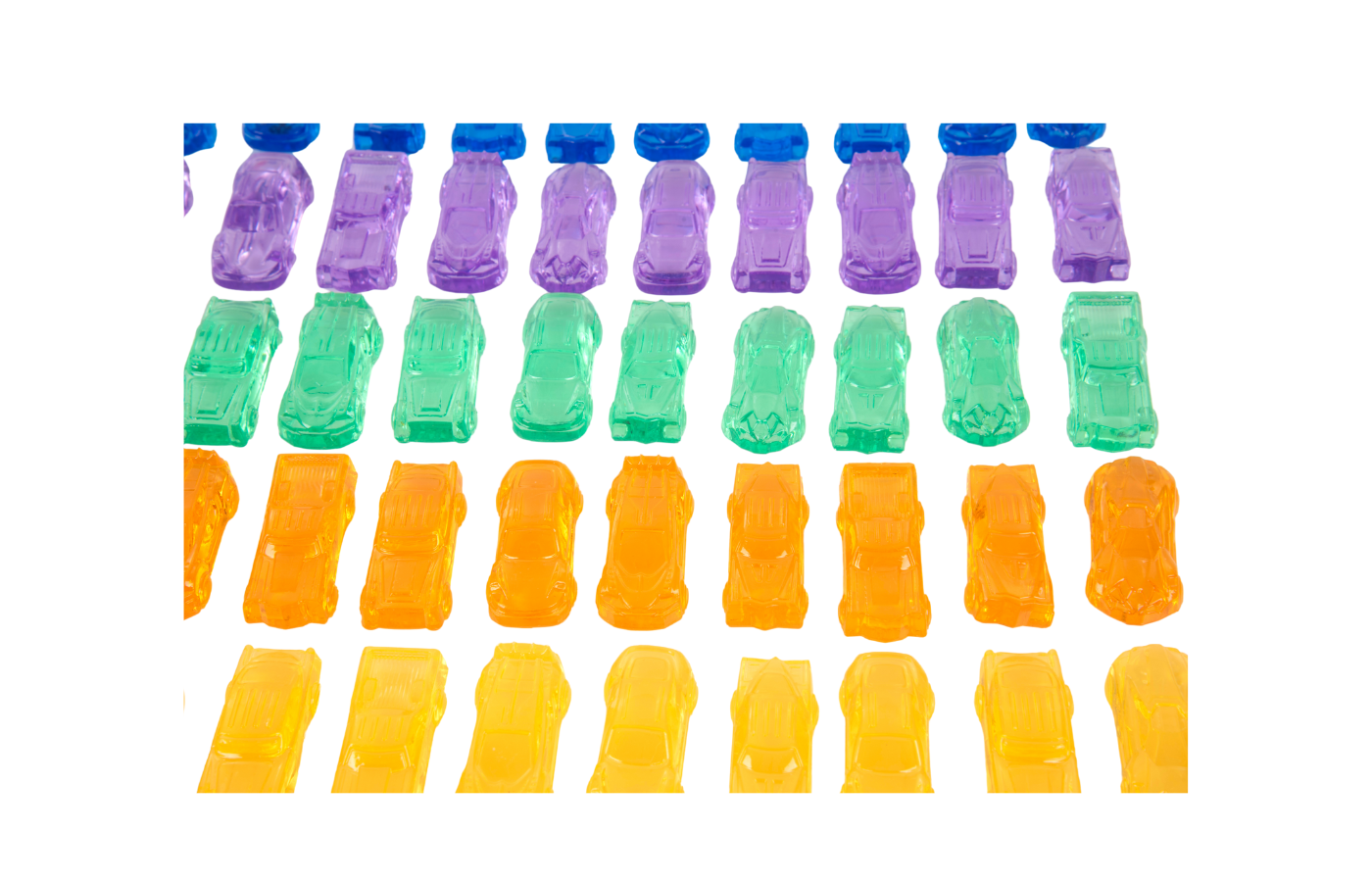 set of 72 transparent cars in 6 different colors (size 4 cm)