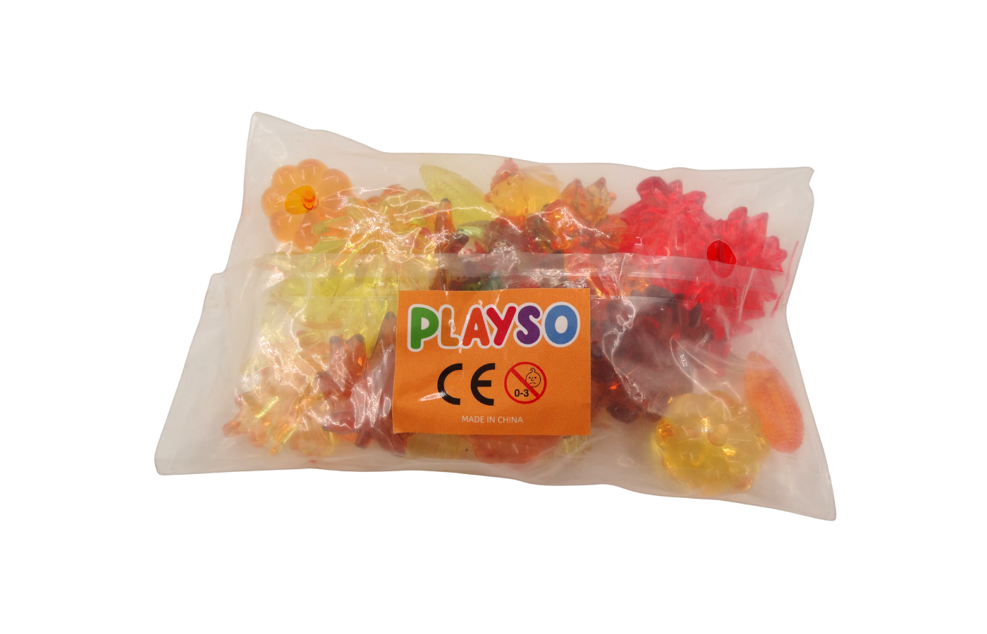 Bring the warm colors of autumn to life with these delightful transparent figures shaped like leaves, pumpkins, and acorns. Use them for counting, crafts, or as additional materials for sensory play.