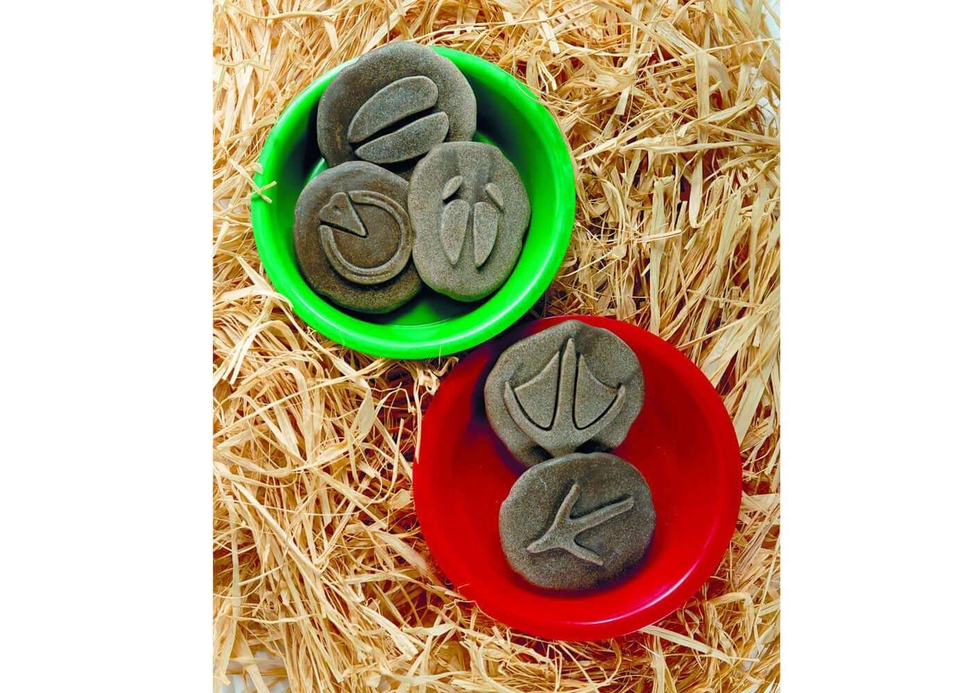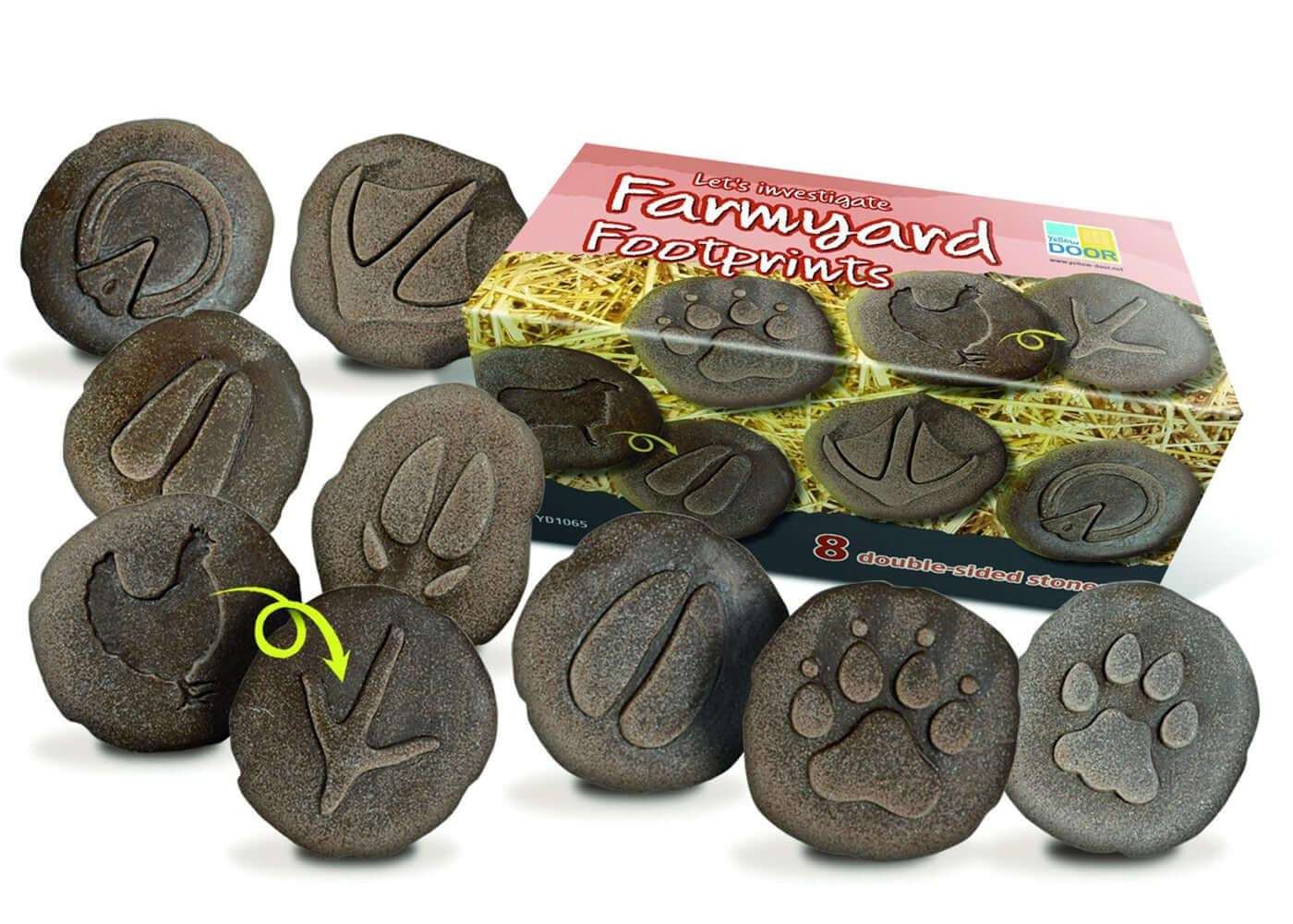 These (foot)prints are guaranteed to stimulate children's curiosity and appeal to the imagination. Each stone shows the footprint of an animal on one side and the animal itself on the other. Perfect for encouraging early investigative skills as kids explore, compare and sort the eight footprints. Kids will enjoy making impressions and comparing the different shapes of the footprints and the features of the animals. They are made of a unique stone mix. The stones are durable and suitable for both indoors and outdoors: in mud, sand, water or earth.