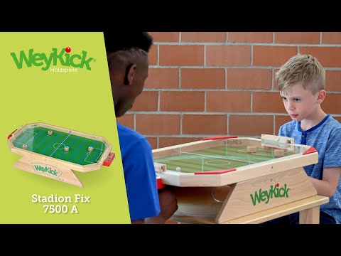 This WeyKick stadium has a special version with a green playing field and plexiglass. The playing surface measures approximately 46 x 71 cm.