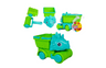 Make a day at the beach even more fun with this dinosaur vehicle. Available in blue-green color scheme. When you take it apart it is a bucket, shovel and sand figure roller.