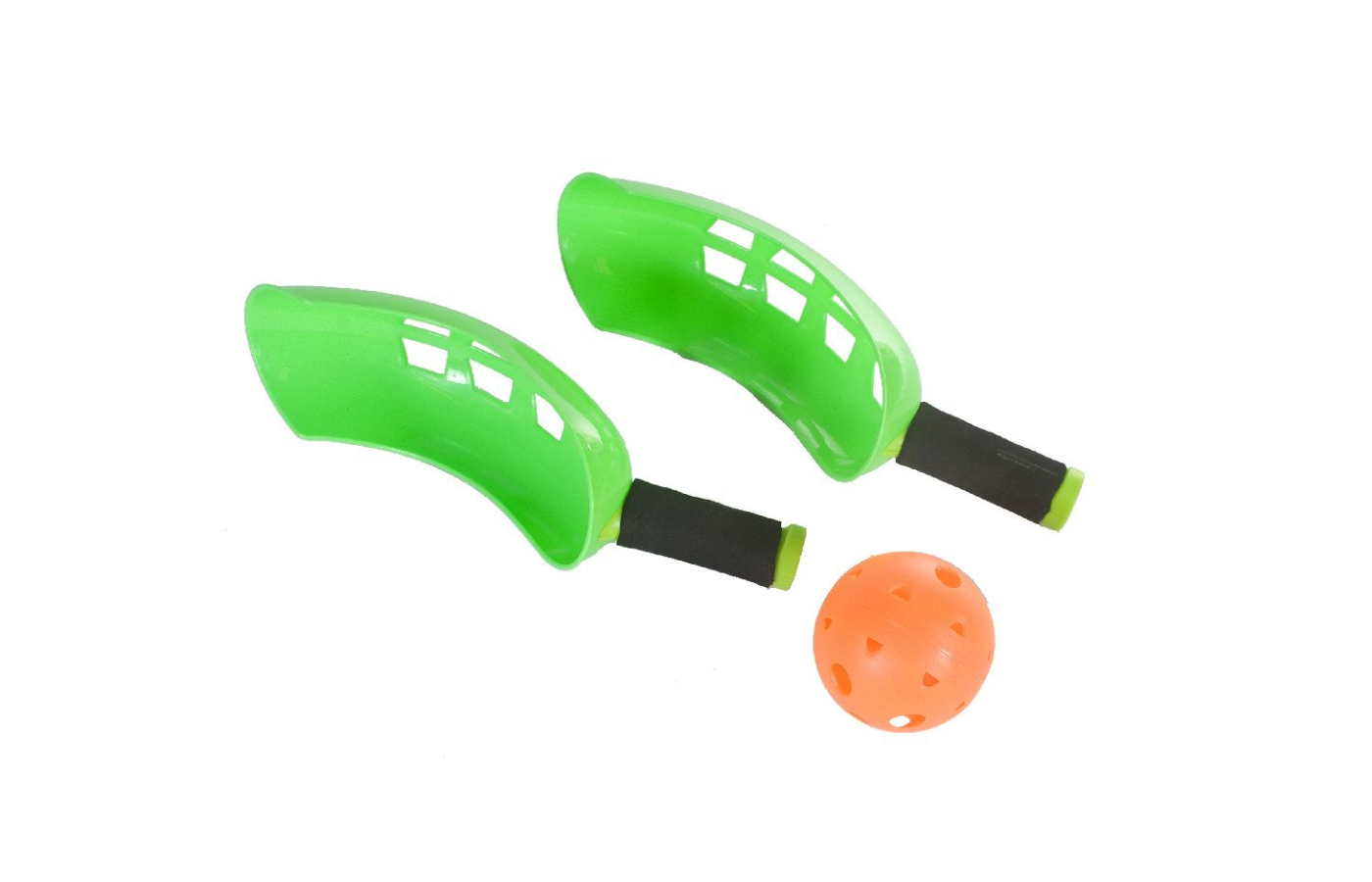 Met deze scoopbalset heb je plezier voor twee! Lanceer de bal met de scoop, en je medespeler vangt hem hier weer mee. Wordt in de kleurencombinatie groen en oranje geleverd in net met hangtag.