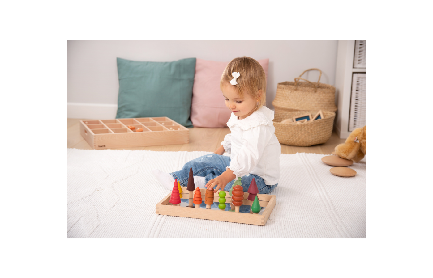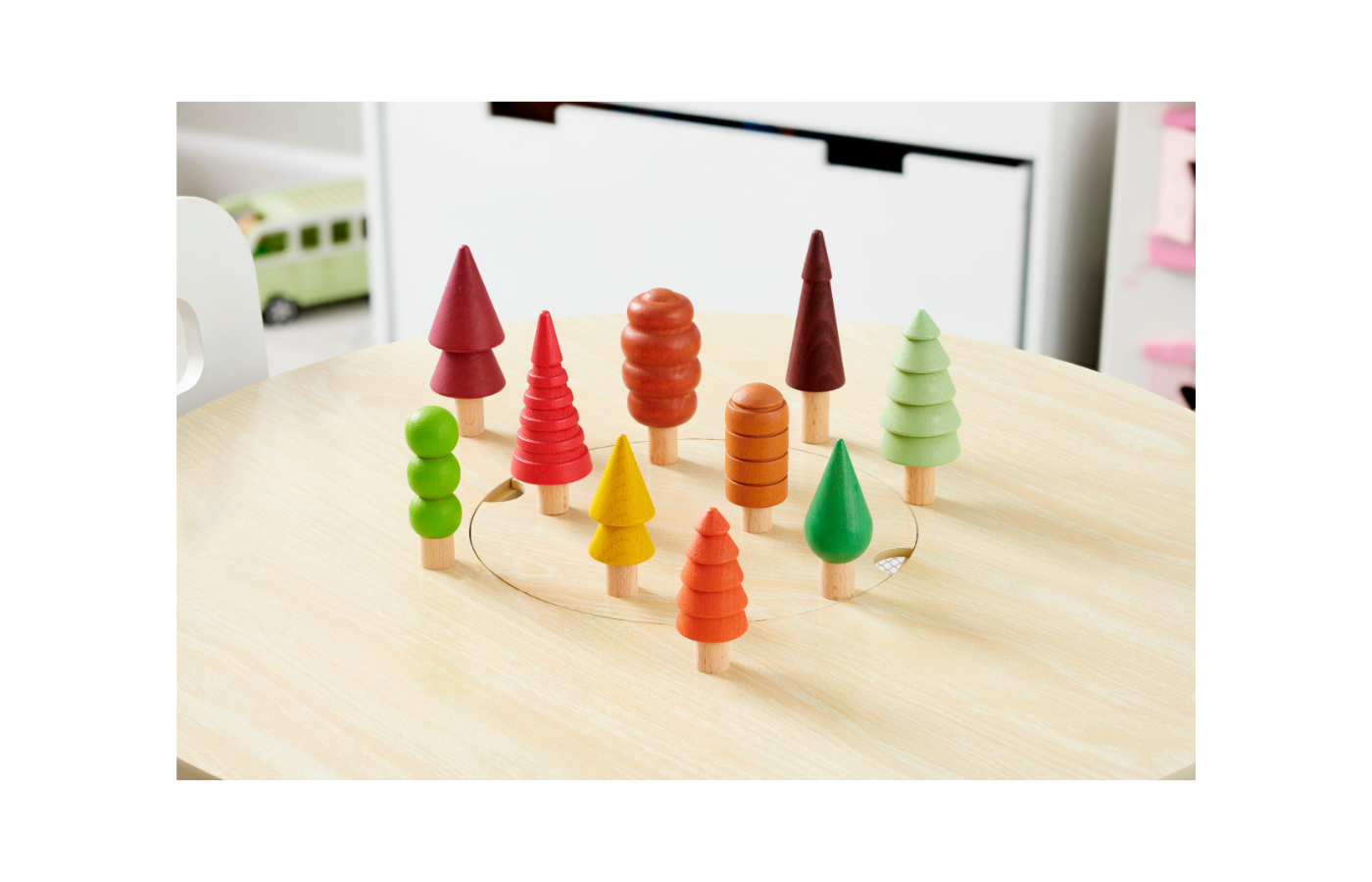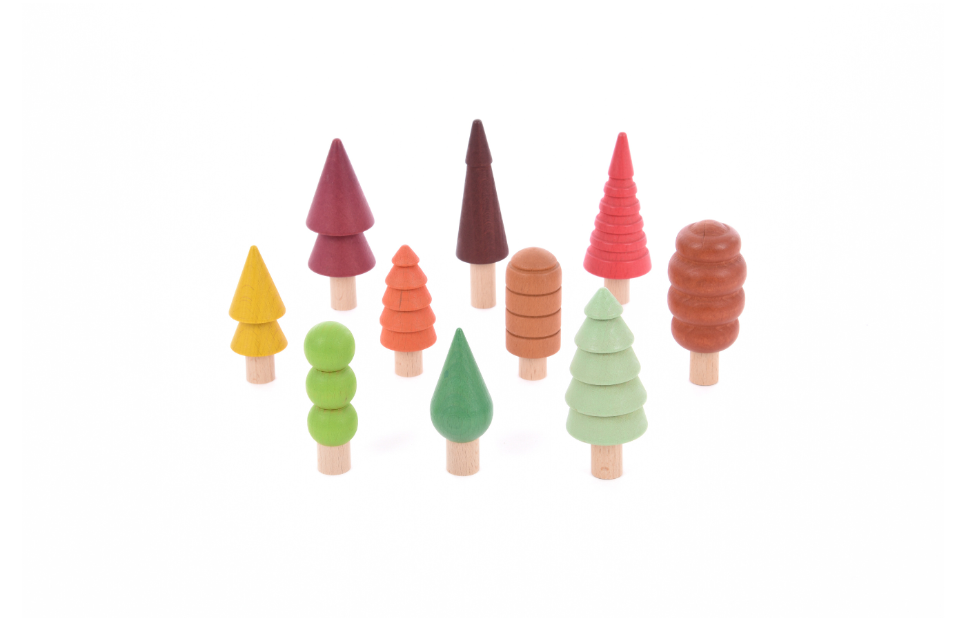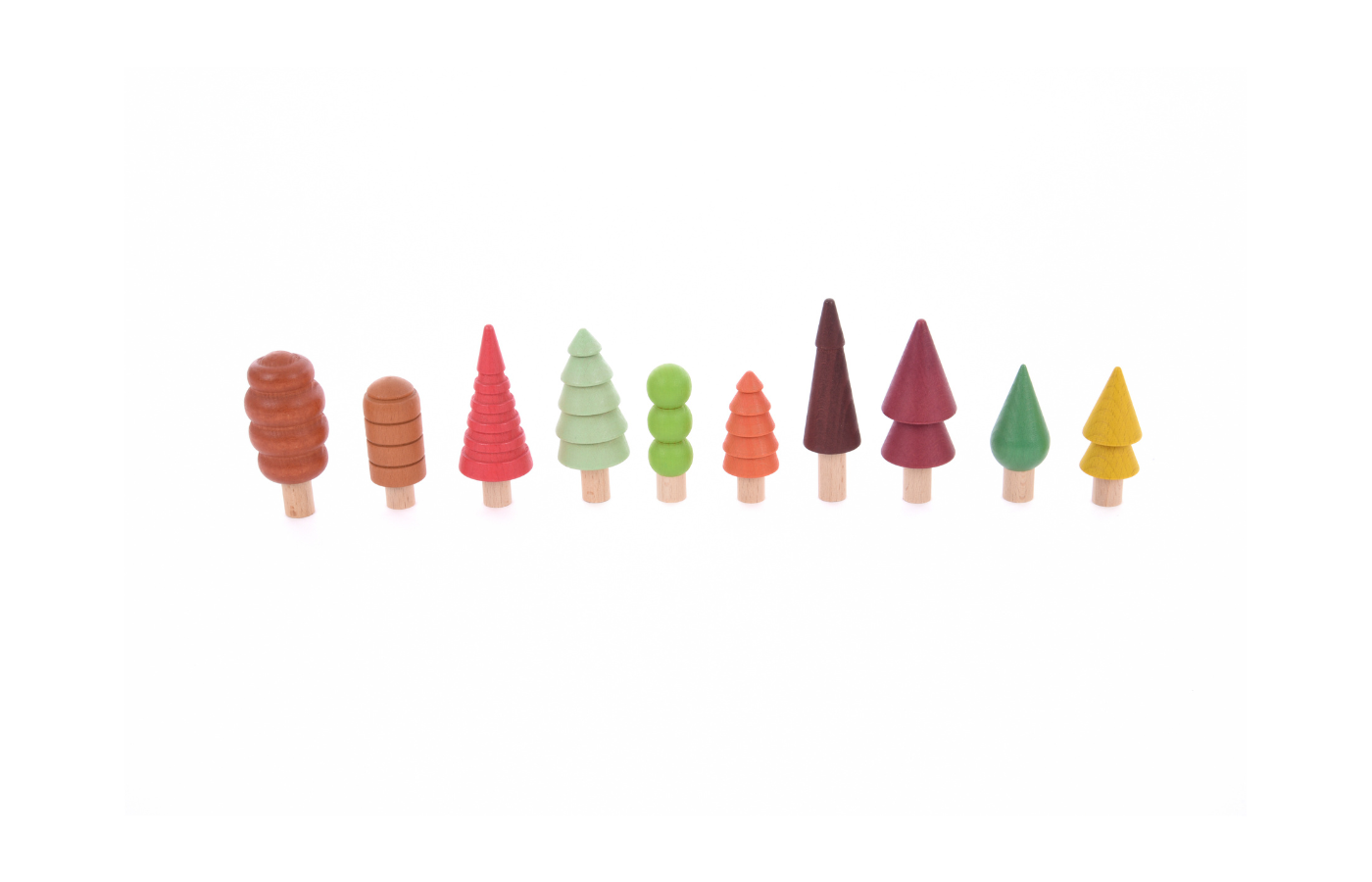 Een prachtige set met 10 gladde beukenhouten seizoensbomen geïnspireerd op de natuur en ontdekking. In 10 prachtige tonale tinten bruin, groen, rood, oranje en geel is de set ideaal voor spelen in kleine werelden, het bespreken van de natuurlijke wereld en het leren over overeenkomsten en verschillen. De loose parts zullen de verbeelding stimuleren, coördinatie ontwikkelen en de fijne motoriek verbeteren. Inclusief katoenen opbergtas met trekkoord.