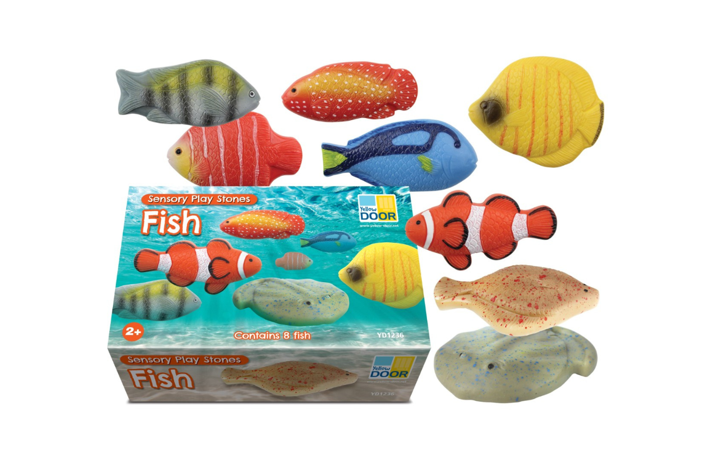 8-delige set met sensorische speelstenen - vissen (afm. 7 - 9 cm)