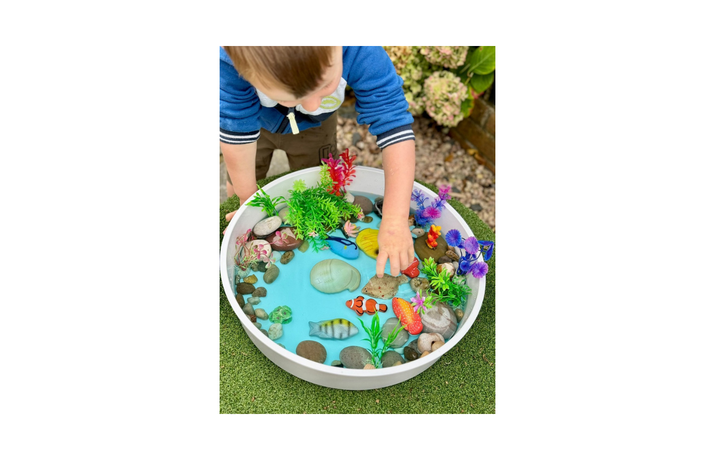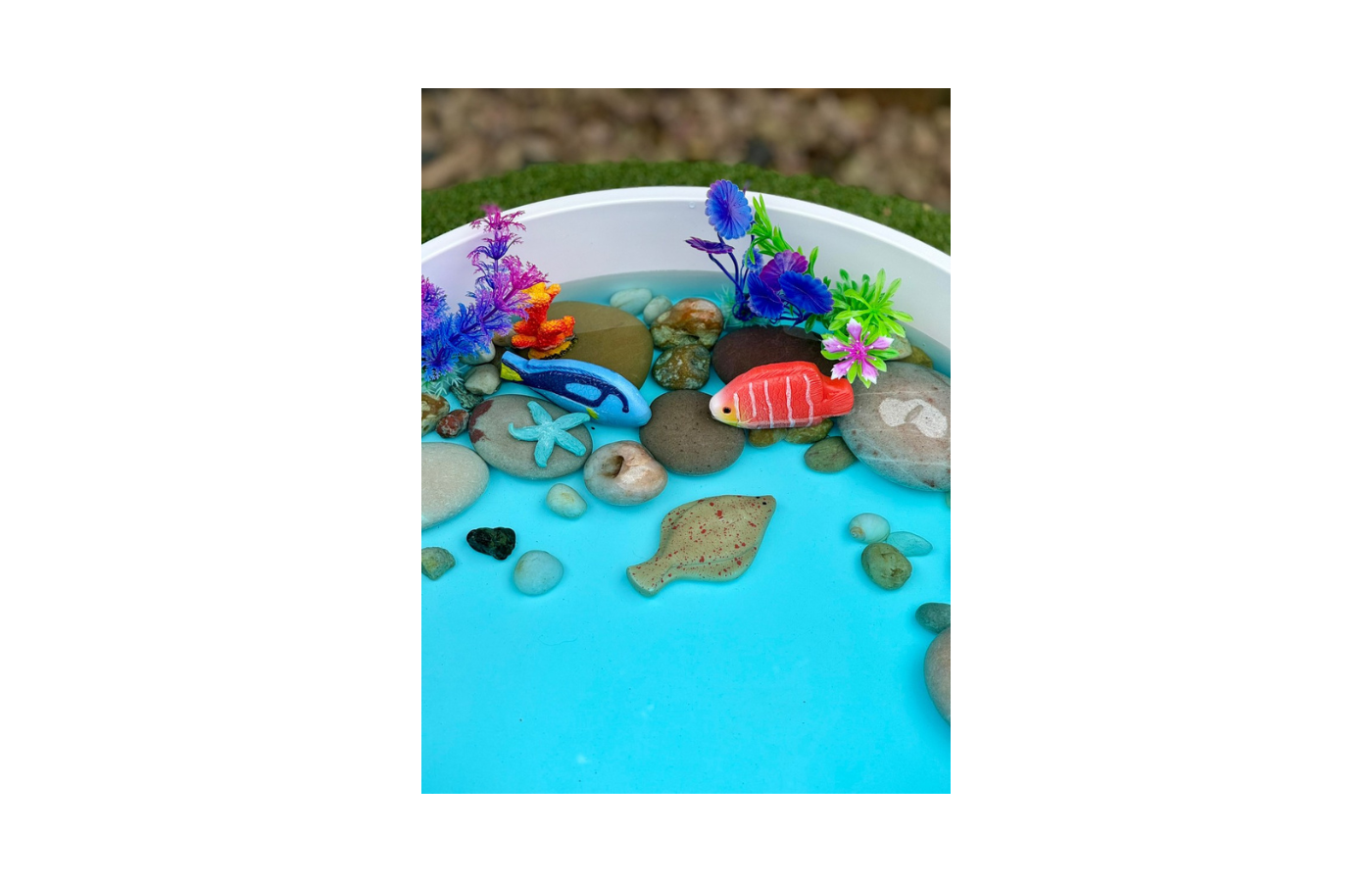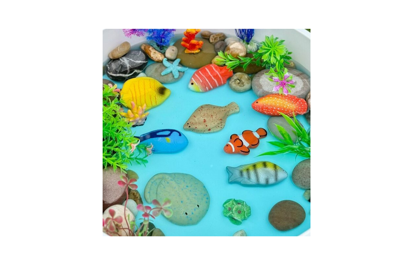 Deze set realistische vissen zal de verbeelding en nieuwsgierigheid van kinderen naar de natuurlijke wereld stimuleren. De stenen zijn gemaakt van een hars/steen mix en kunnen zowel binnen als buiten gebruikt worden. Ook kan je er mee spelen in water, zand en modder.