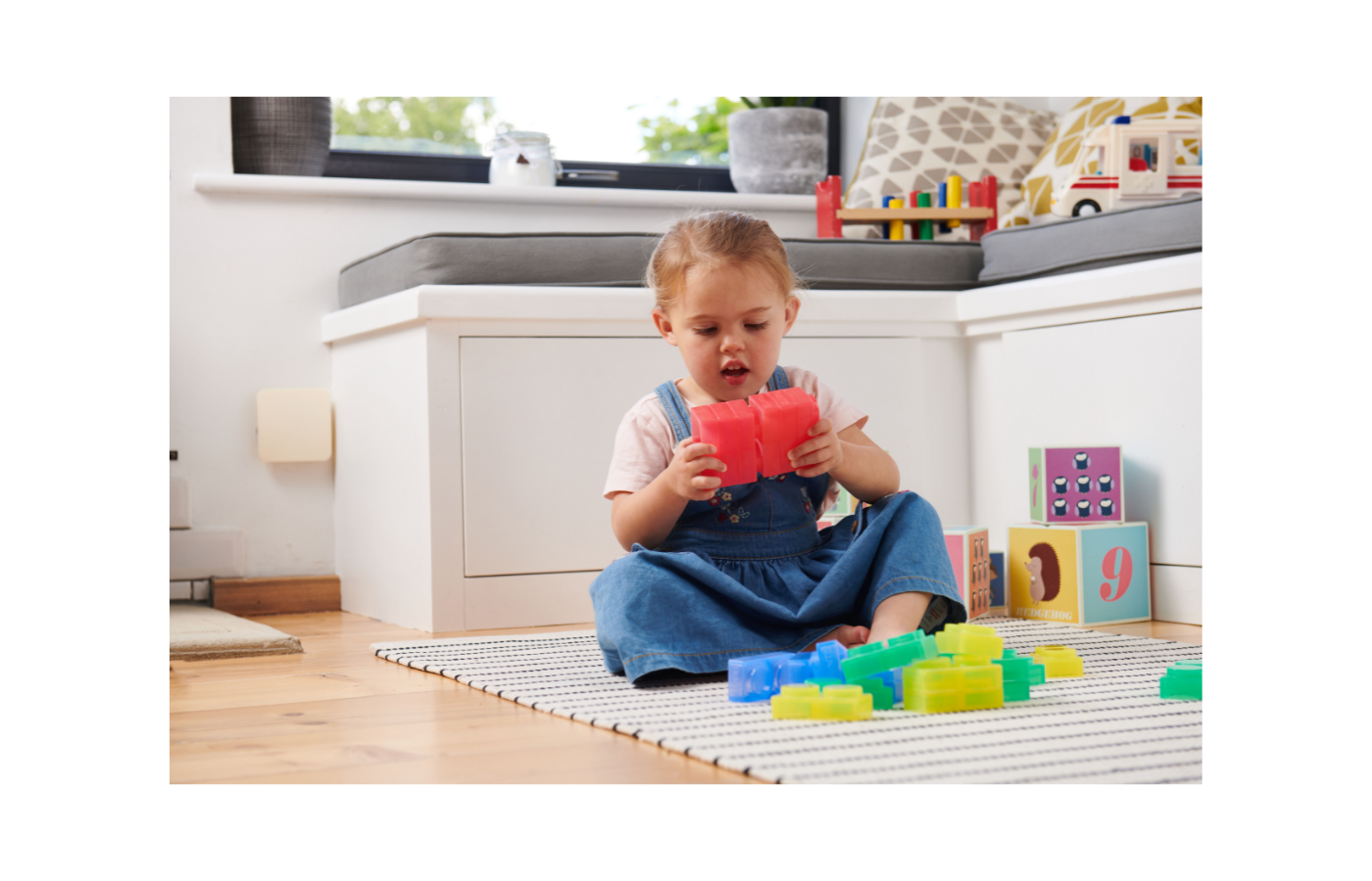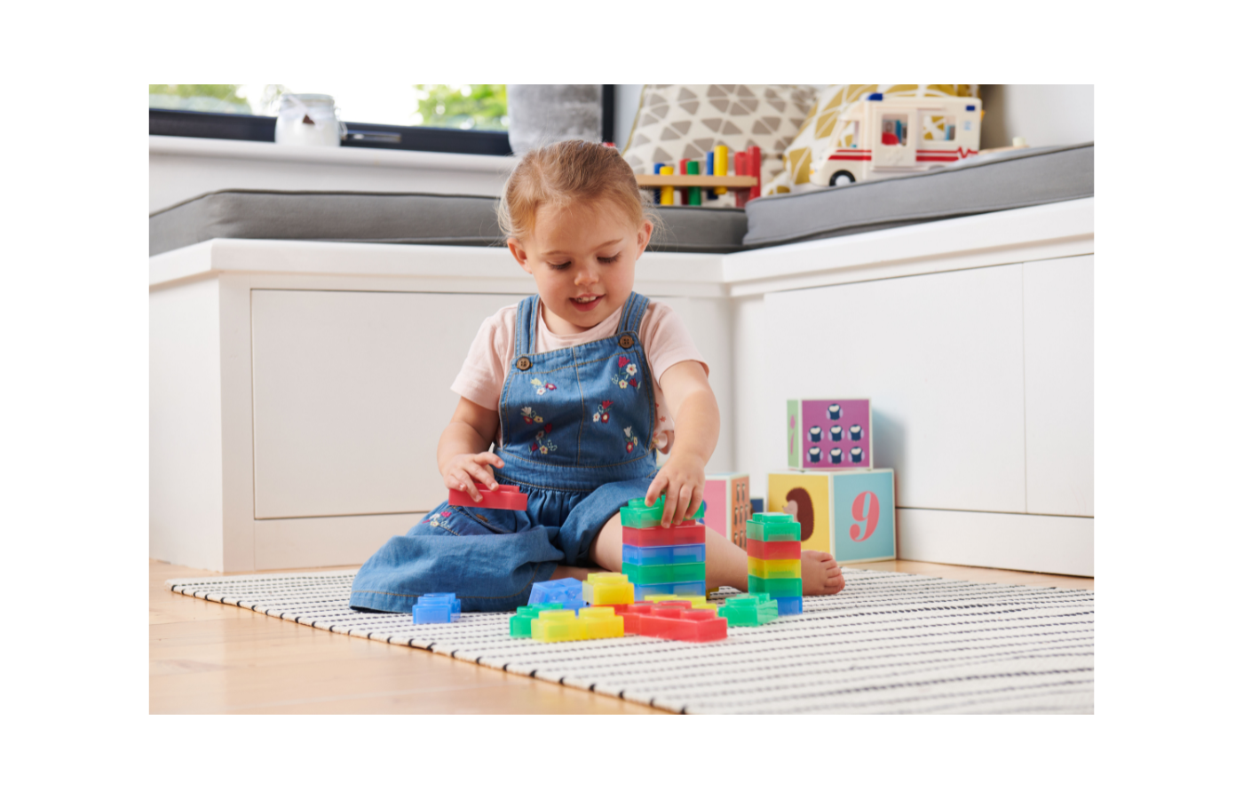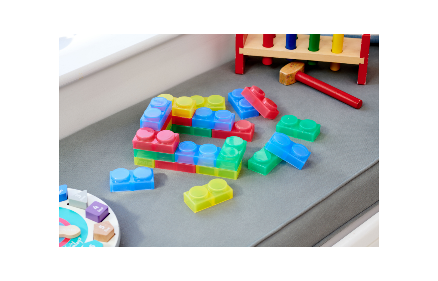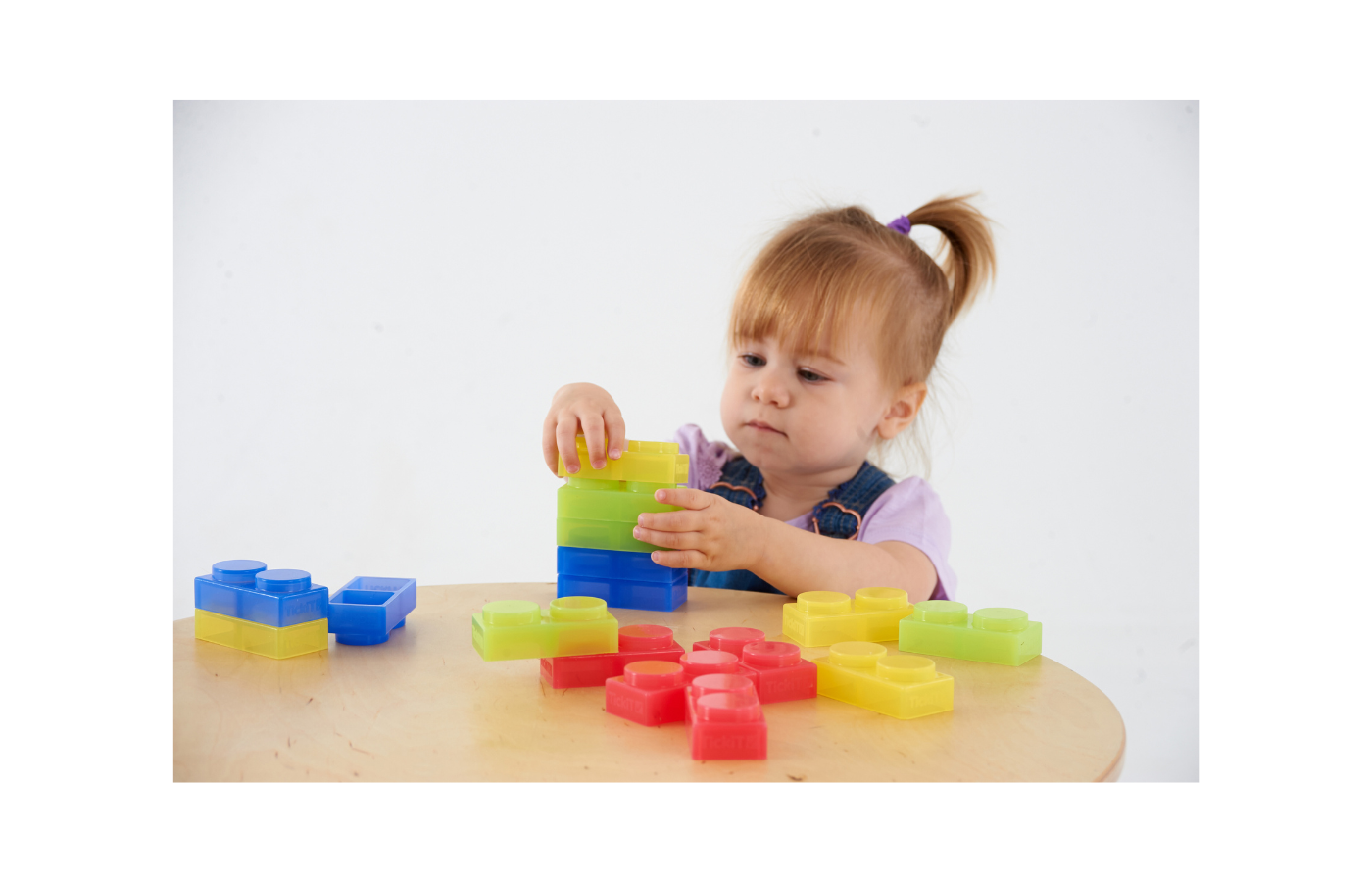 Doorzichtige zachte bouwblokken gemaakt voor kleine kinderhanden zodat kinderen gemakkelijk kunnen stapelen en bouwen.