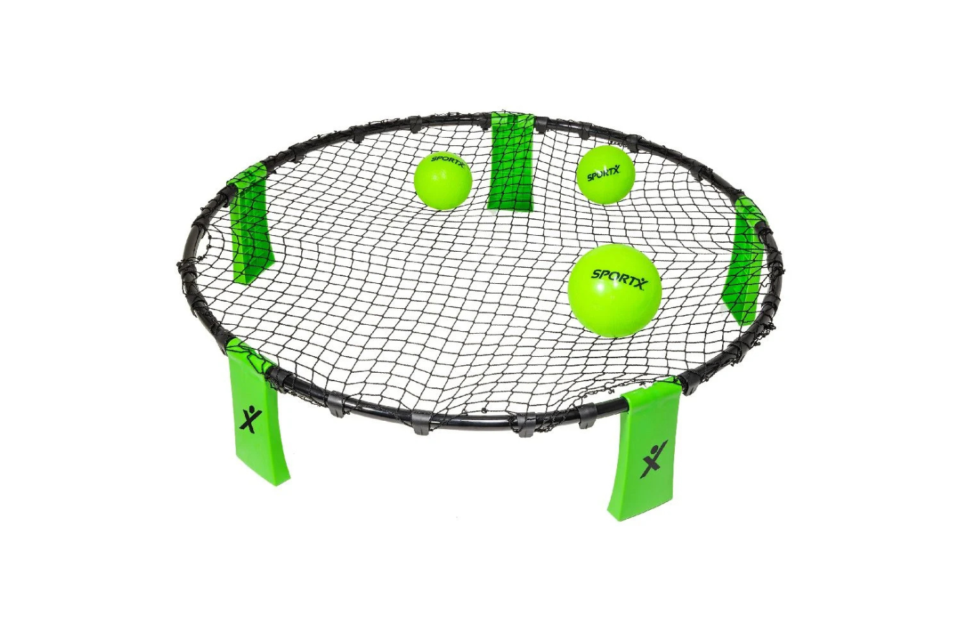 SportX Smashball. Begin het spel door de bal met de hand op het net te slaan in de richting van de tegenstander. Elk team mag de bal maximaal drie keer raken, voordat de bal naar het net moet worden gespeeld en het spel overgaat naar het andere team. De bal mag door een teamlid worden geslagen, gemept of gesmasht. Het serverende team blijft serveren totdat de tegenpartij een punt wint en de opslag overgaat naar het andere team. Je speelt maximaal 21 punten per game.