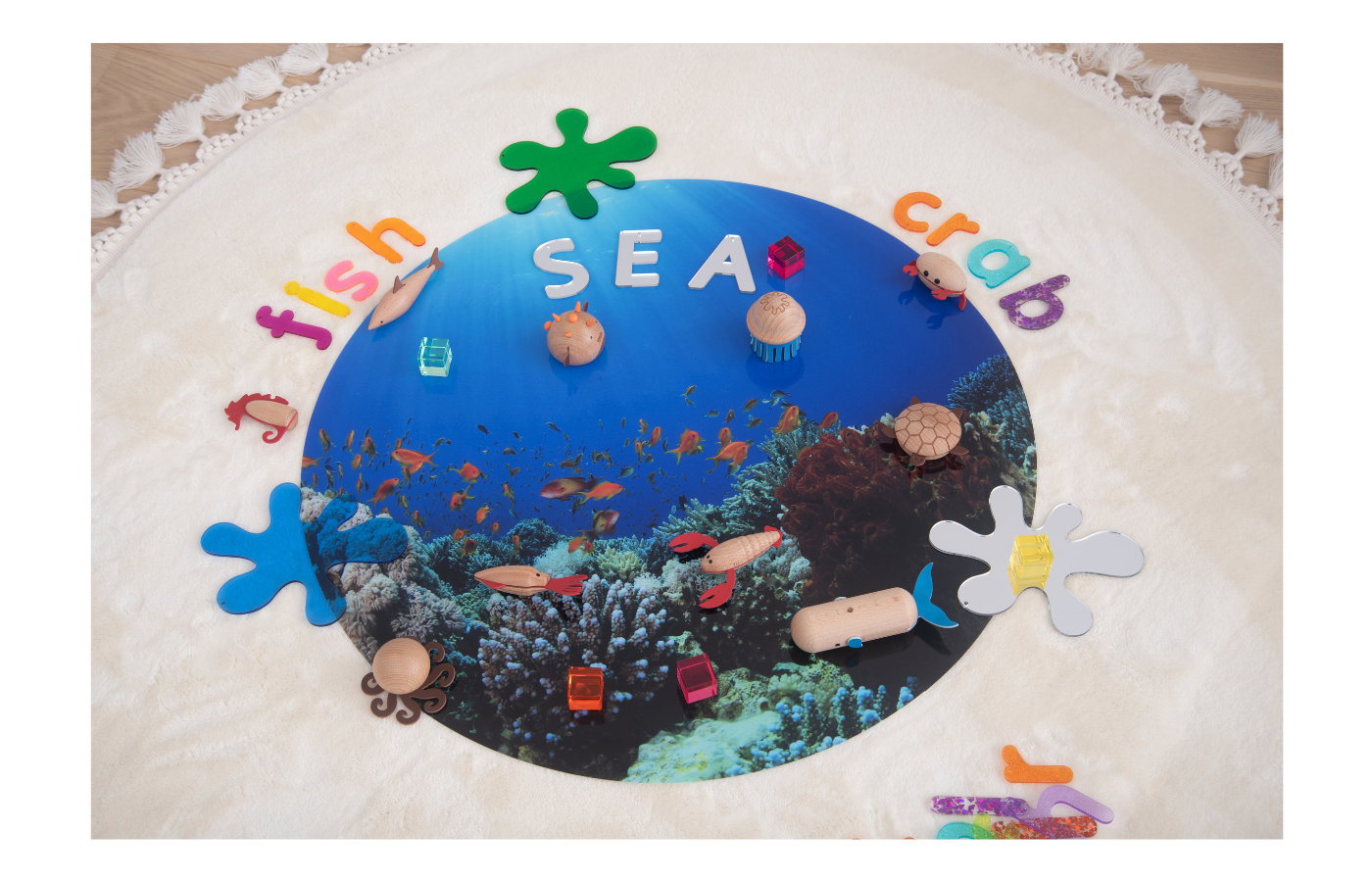 Beleef de spannendste avonturen met deze ontdekkingsspeelmat in het thema oceaan. De mat is gemaakt van duurzaam polyester en is slijtvast en waterdicht. Veilig te gebruiken met natte of droge materialen. Door zijn semi-doorschijnende eigenschappen werkt de speelmat bijzonder goed op een lichttafel.