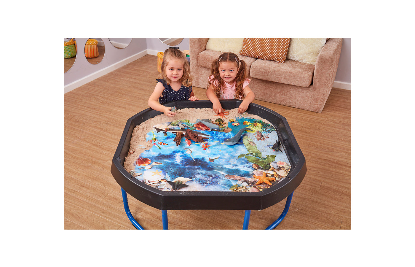 Beleef de spannendste avonturen met deze speelmat in het thema onderwater wereld. Te gebruiken in combinatie met de ontdektafel (Tuff Tray). De speelmat kan gebruikt worden met zowel natte als droge materialen.
