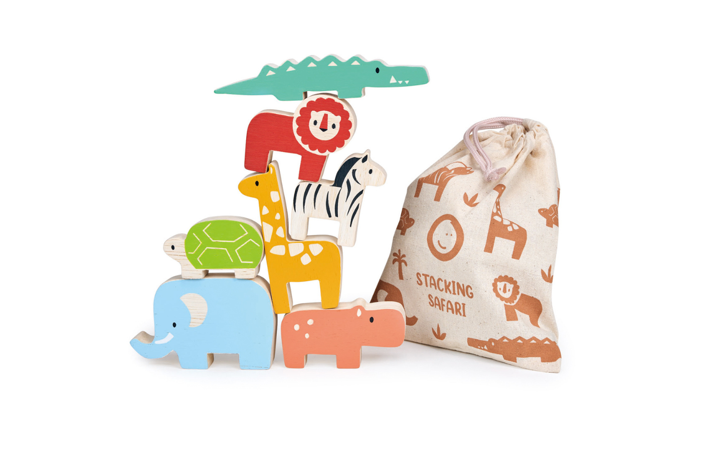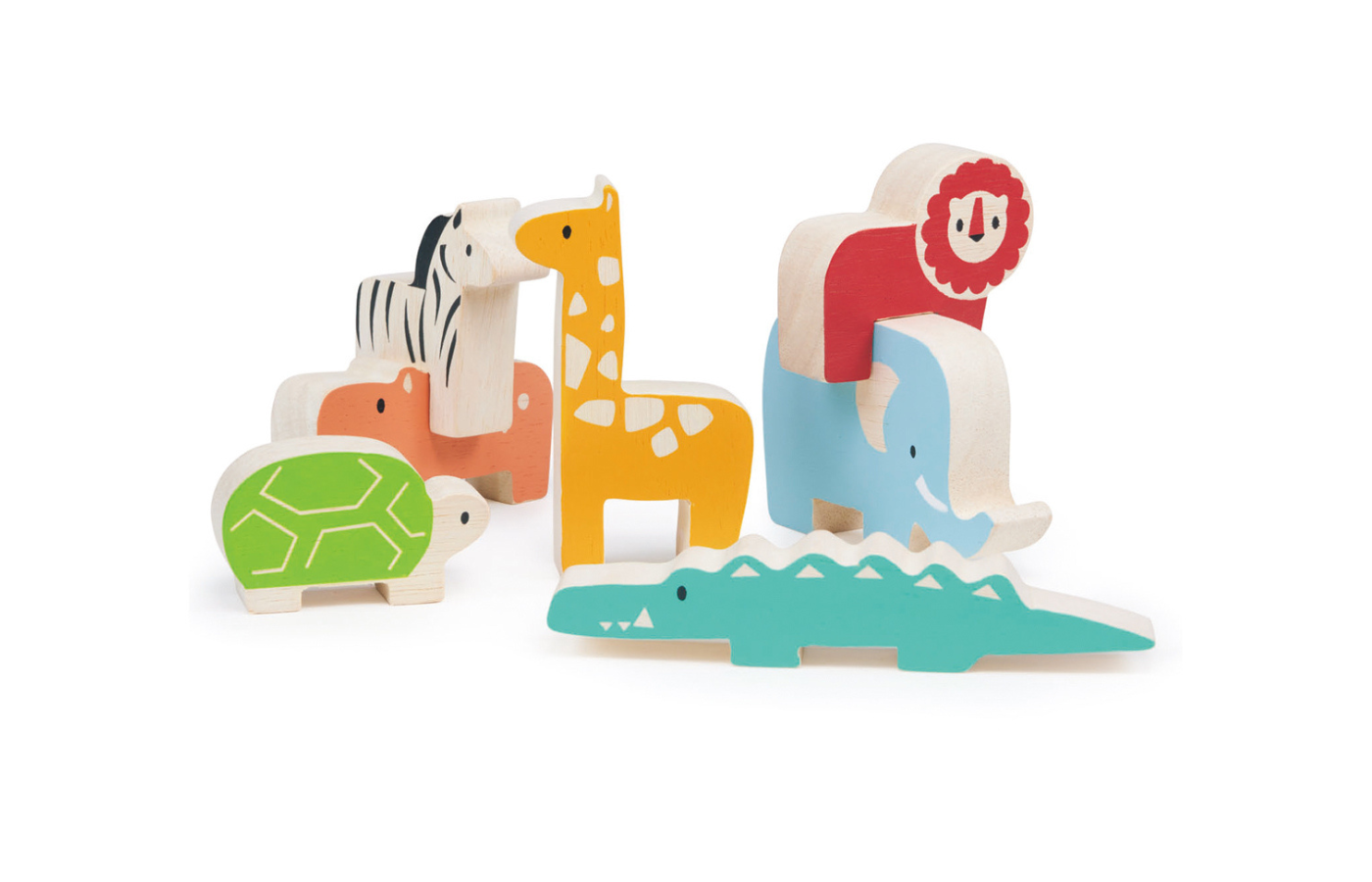 Deze mooie collectie van 7 houten wilde dieren is ideaal om mee te spelen of om te stapelen. Kan jij de hoogste toren maken?