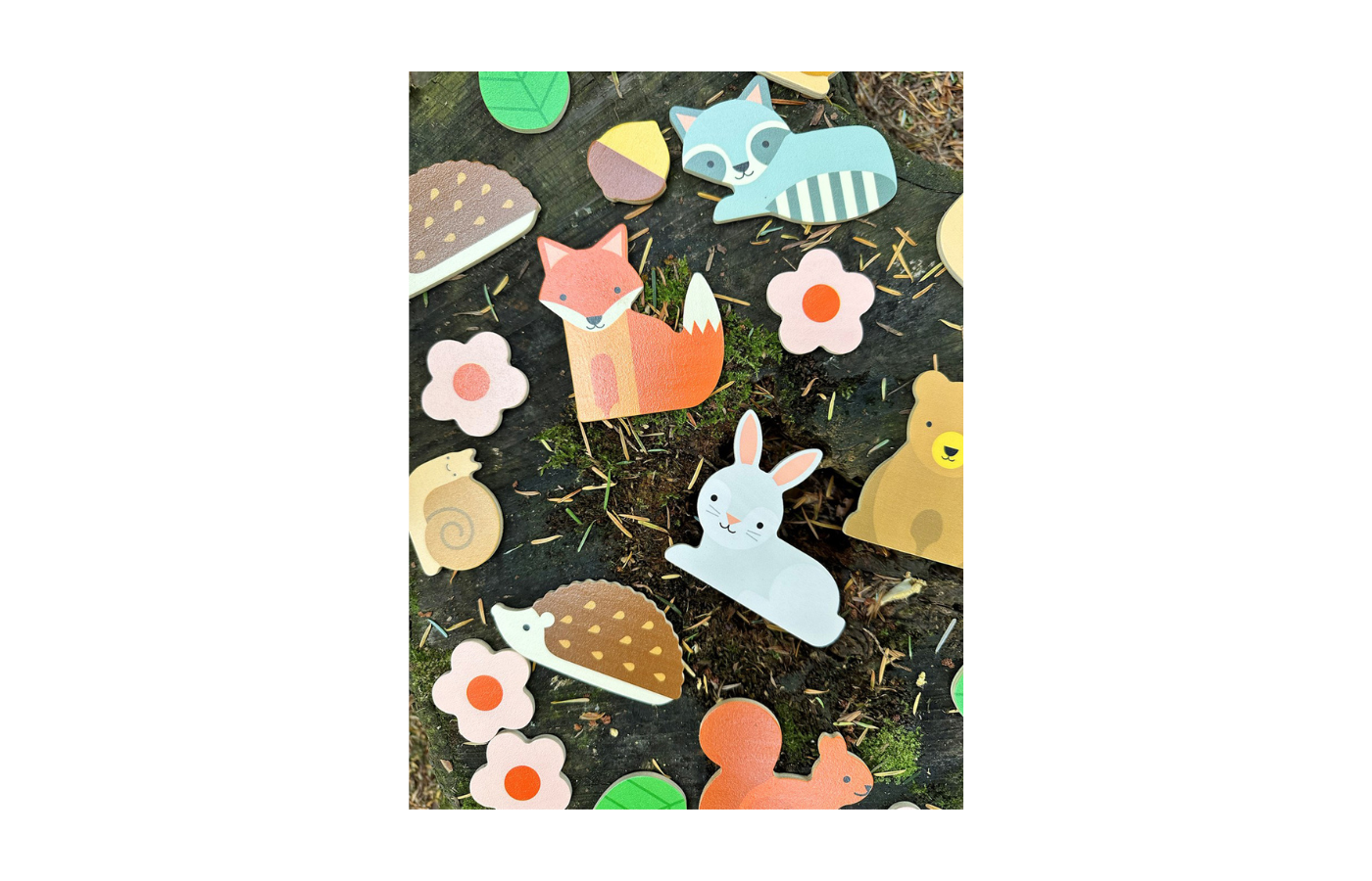 Konijntje, egel, eekhoorn, beer en nog veel vriendjes staan klaar om zich op een felgekleurde houten paddenstoel te nestelen, maar pas op voor wiebelen!