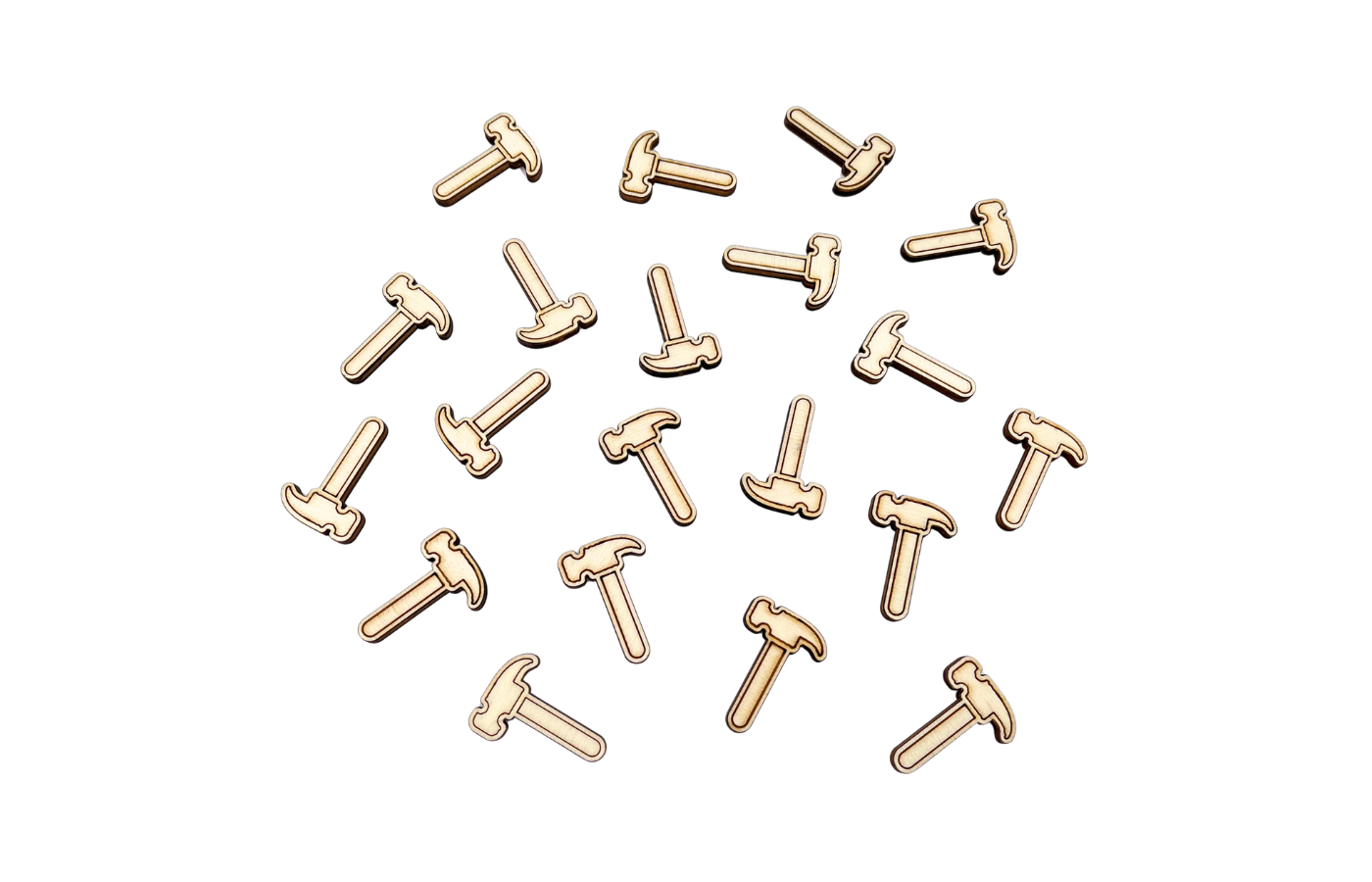 set van 20 strooihoutjes - hamer (afm. 3,5 x 2,5 x 0,4 cm)