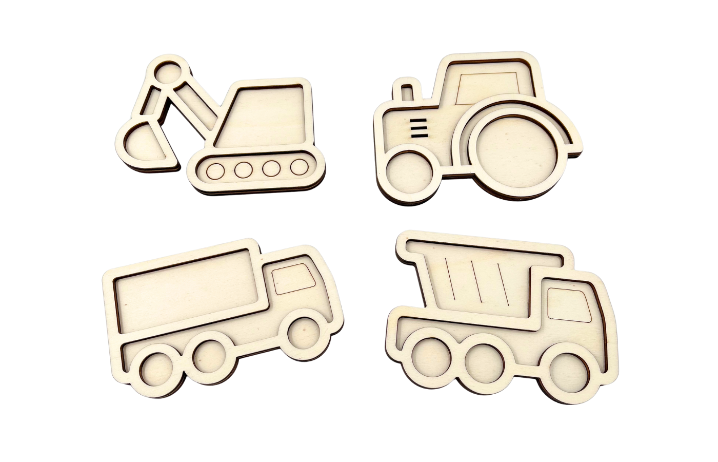 4 vulvormen - werkvoertuigen (afm. tractor 10 x 13 x 0,8 cm)