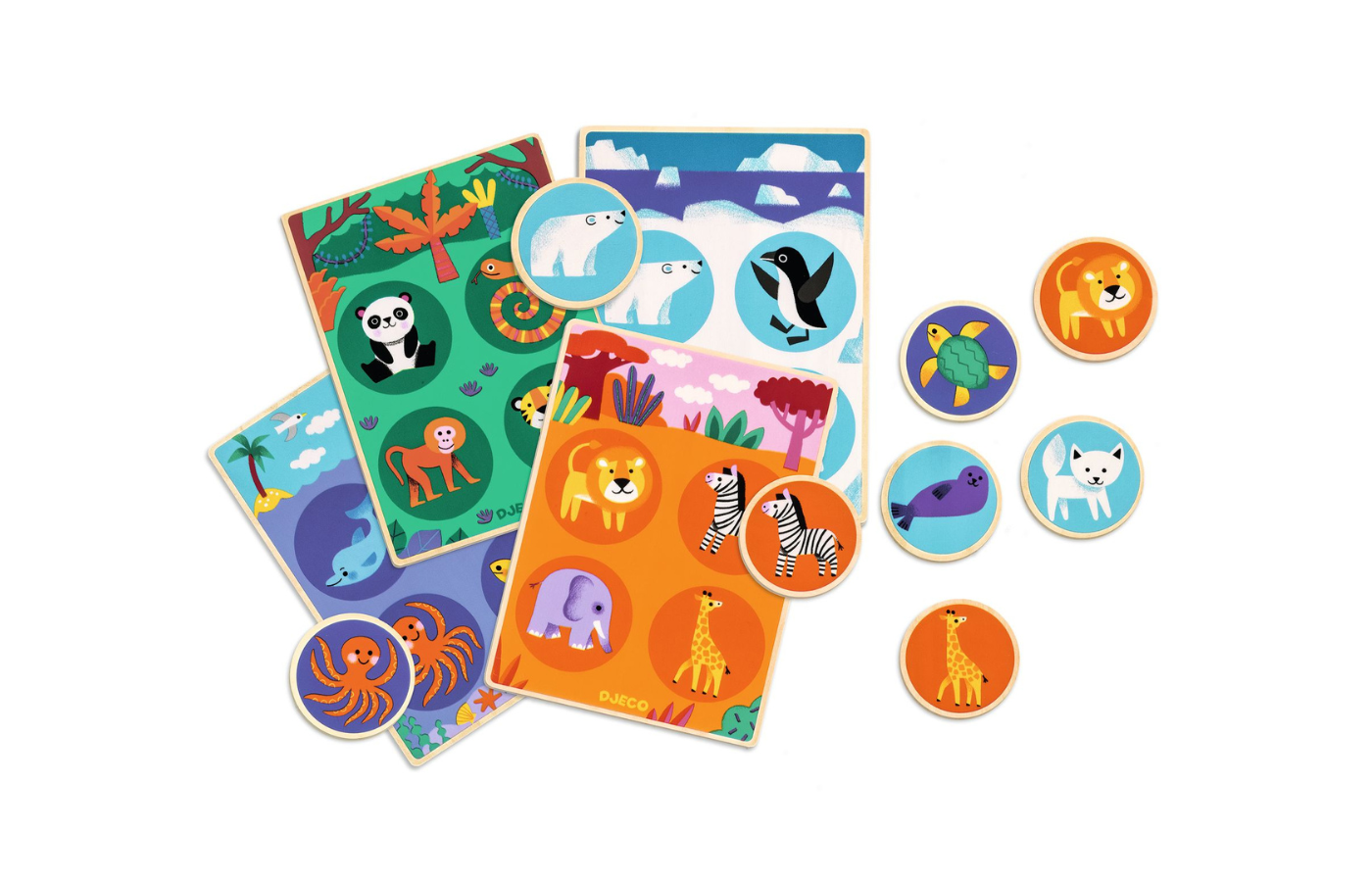 Loto Wood is een bingo spel gemaakt van hout met als thema dieren uit de wereld. Een combinatie- en geheugenspel, ideaal voor kinderen om spelenderwijs te leren.
