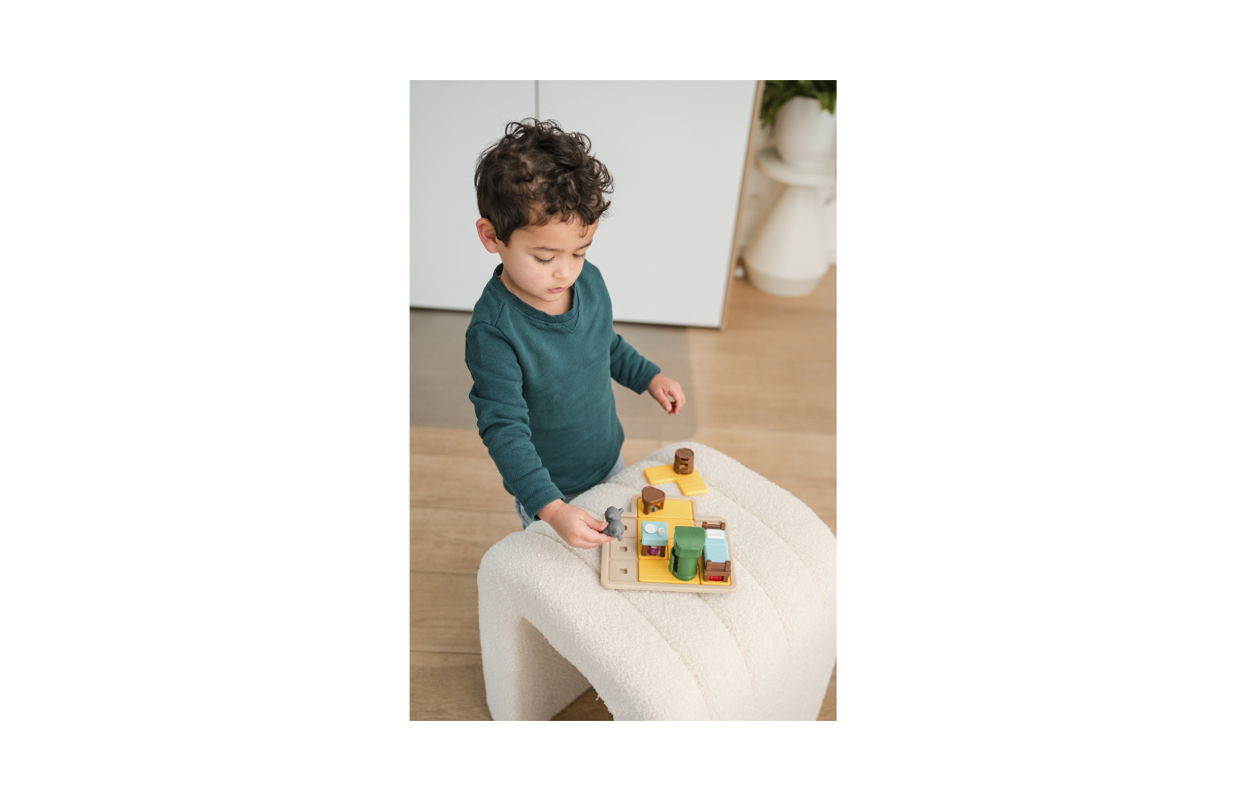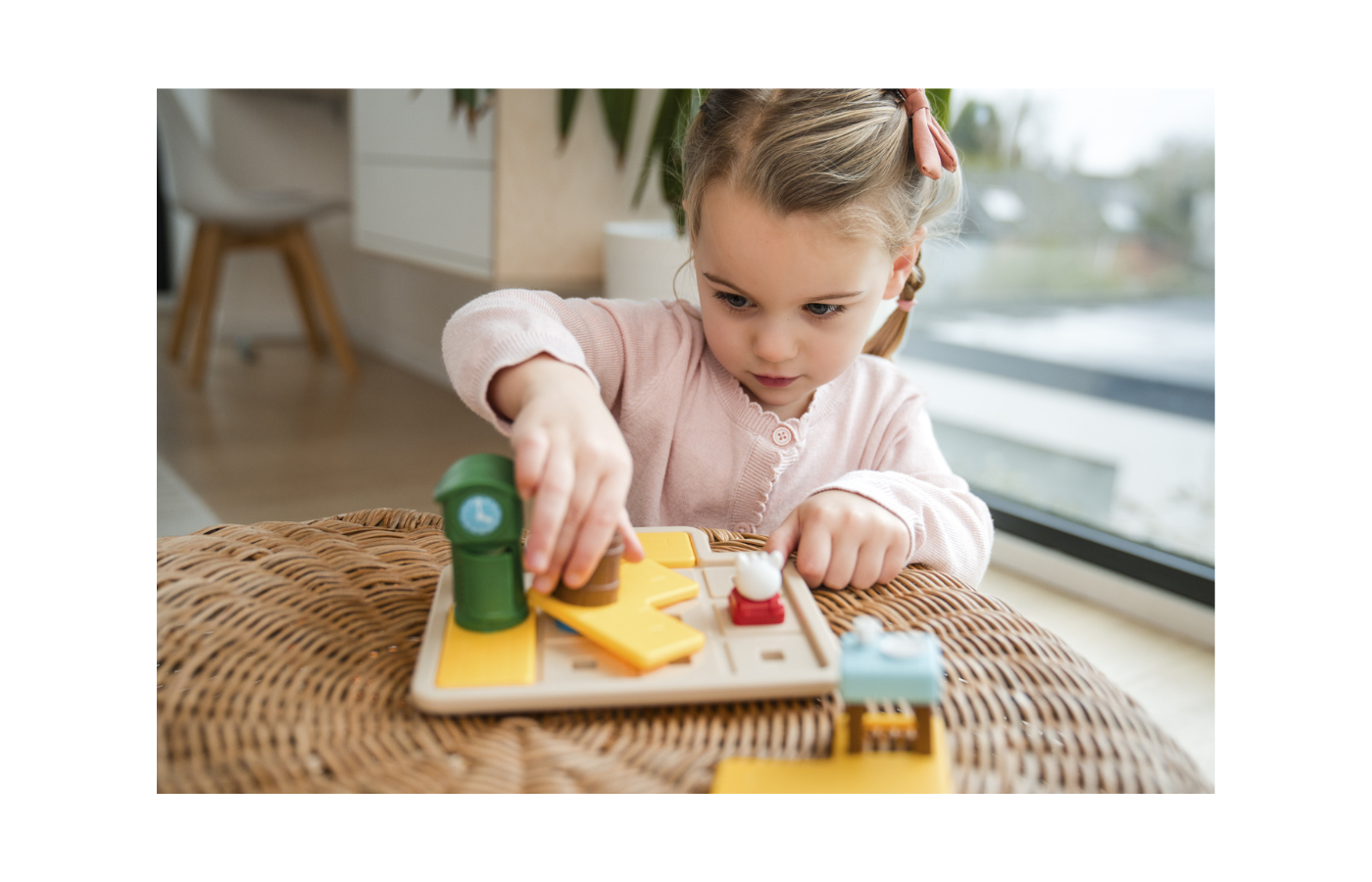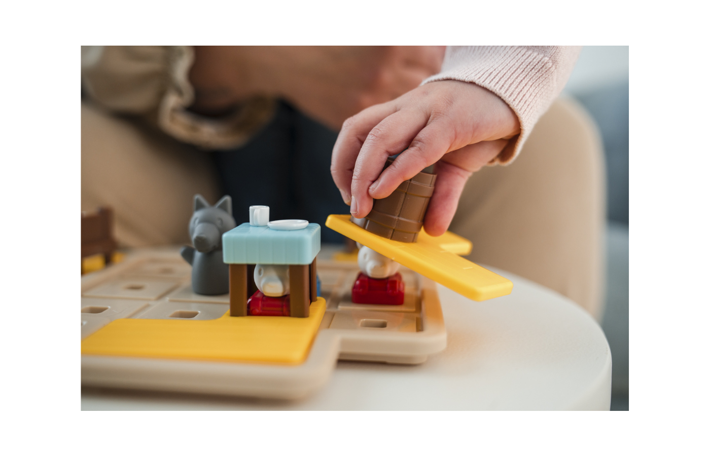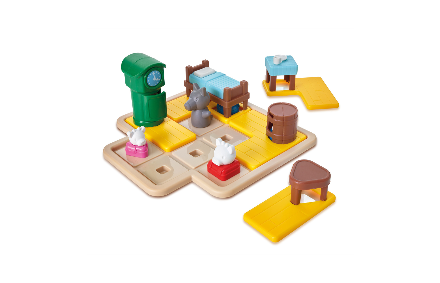 Zorg ervoor dat de 7 kleine geitjes zich op tijd kunnen verstoppen vooraleer de wolf ze vindt. Maar let goed op, want niet elk geitje past onder elk meubel.