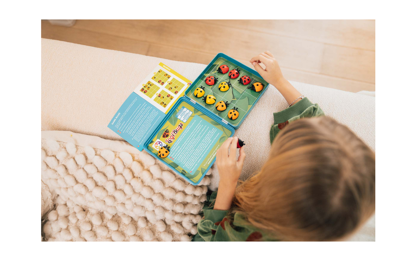 Gebruik logica en deductie om lieveheersbeestjes in 3 kleuren op de juiste plek en volgorde te plaatsen. Volg de cijfer-en kleurenhints en los de 48 opdrachten op. Met stip één van de leukste magnetische reisspellen van SmartGames!