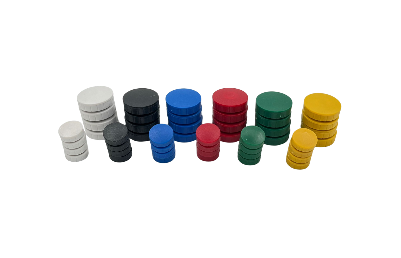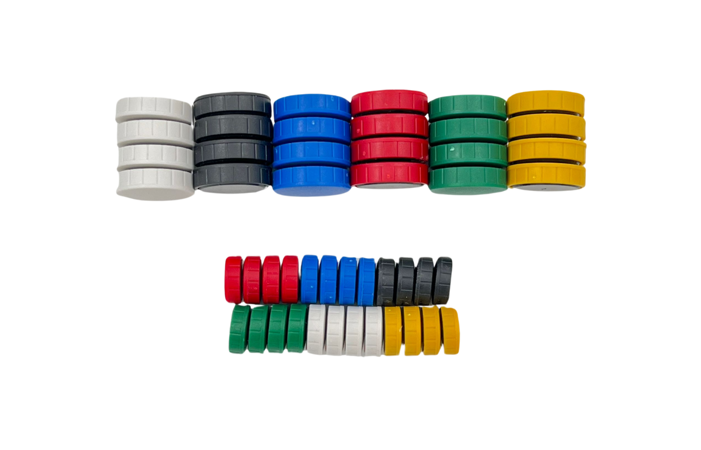 4x rood, 4x wit, 4x blauw, 4x groen, 4x geel en 4x zwart (afm. diam. 3,2 cm)