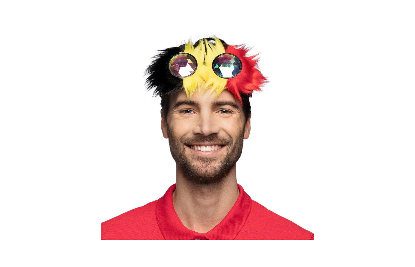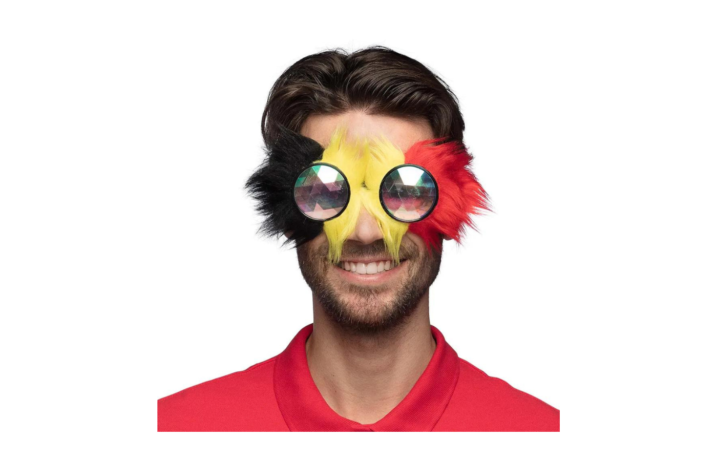 Voeg een sprankelende dosis Belgische flair toe aan je feestelijke look met deze partybril Rave en moedig de Rode Duivels aan in stijl.