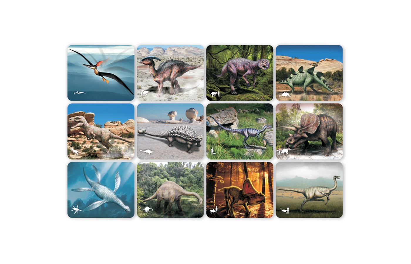 De bijgevoegde handleiding beschrijft waar en wanneer de dieren leefden, wat ze aten en hoe groot ze werden.