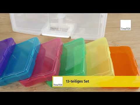 Deze kleurrijke, transparante dozen helpen bij het opbergen, vervoeren en sorteren van klein materiaal. Dankzij de verschillende kleuren kunnen de dozen worden gebruikt als een handig ordenings- of kleurcoderingssysteem. De 12 dozen zitten in een grote doorzichtige kunststof koffer die ook los kan worden gebruikt of om de gekleurde dozen in op te bergen en te vervoeren. De kleine dozen zijn ook geschikt voor documenten tot A6-plus formaat. De dozen zijn doorzichtig daardoor is de inhoud altijd gemakkelijk te zien.