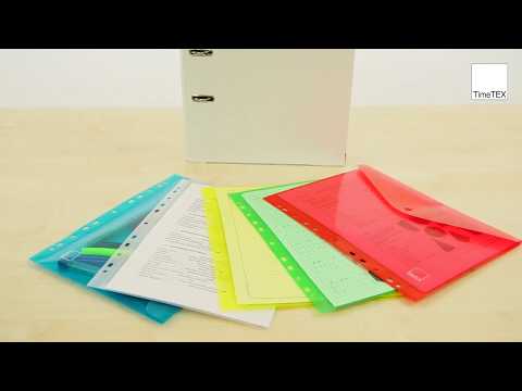 Set van 5 transparante opbergmappen om je documenten geordend en kreukvrij op te bergen en te transporteren. Aan de achterzijde van de map is een open vak waar je gemakkelijk en snel papieren in kan opbergen. Het vak aan de voorkant kan je afsluiten met een drukknop. De mappen zijn transparant zodat je de inhoud direct kan zien. Ze passen perfect in een A4 ringmap met 2 of met 4 ringen. De verschillende kleuren kunnen helpen bij het ordenen van je documenten.