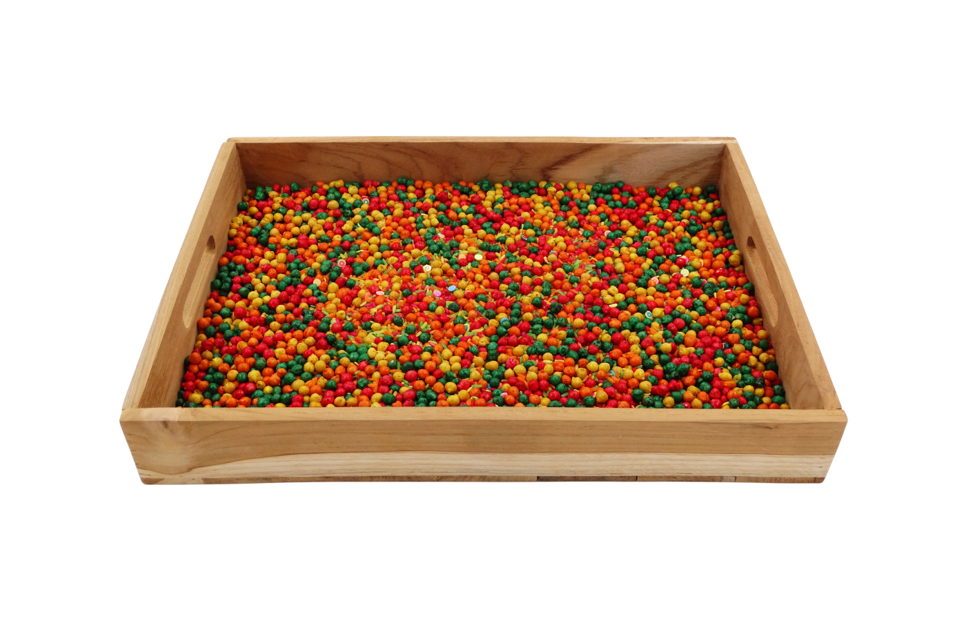 Deze gekleurde kikkererwten in combinatie met rijst en fillers zijn een echte topper voor sensorisch spel, telactiviteiten en open-einde spel. Dankzij hun vrolijke kleuren en fijne textuur prikkelen ze de zintuigen én de fantasie van kinderen. Perfect voor kleine handjes om te voelen, scheppen, sorteren en ontdekken!