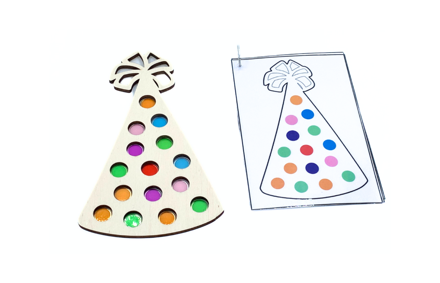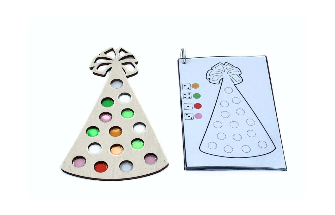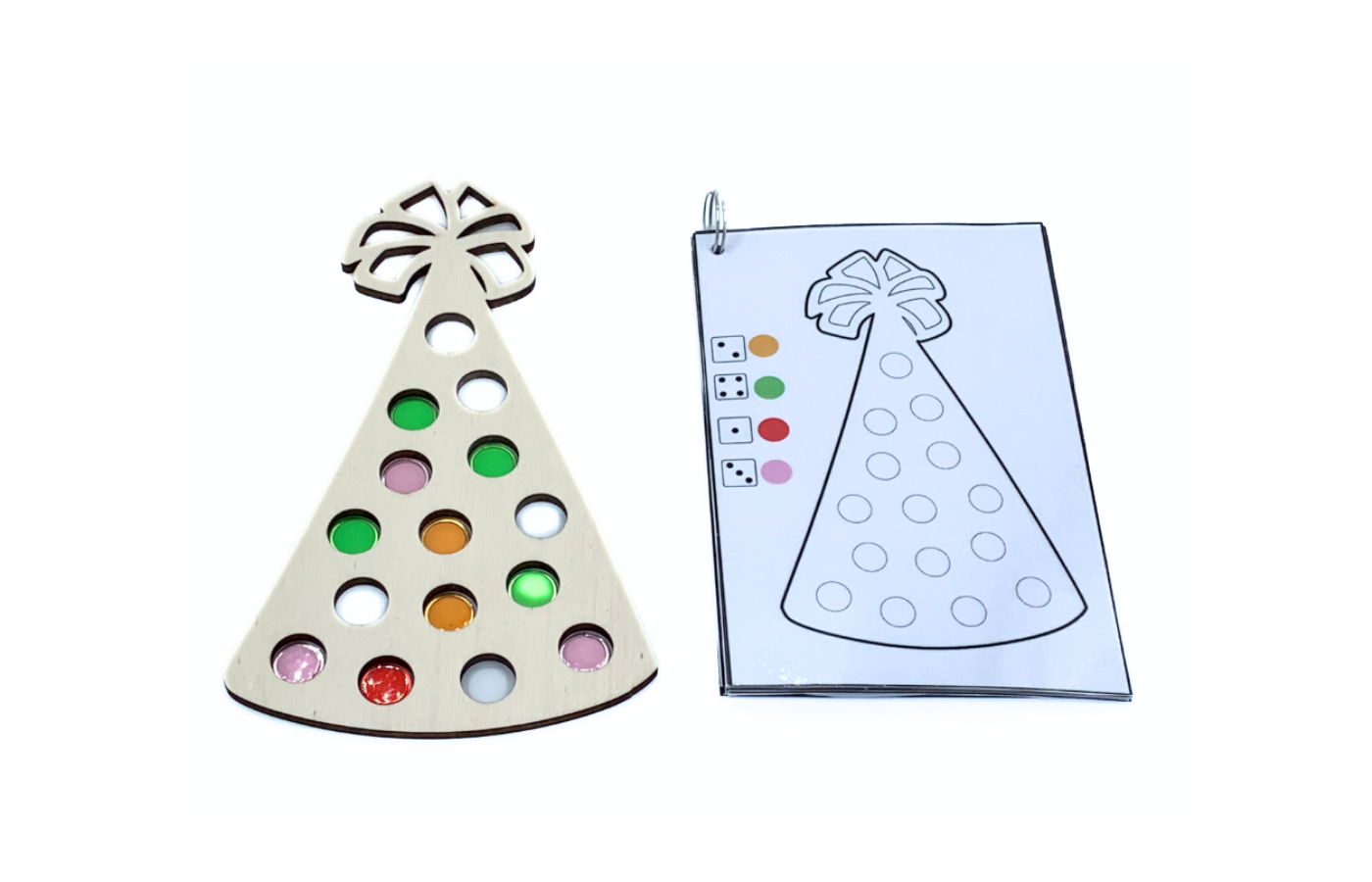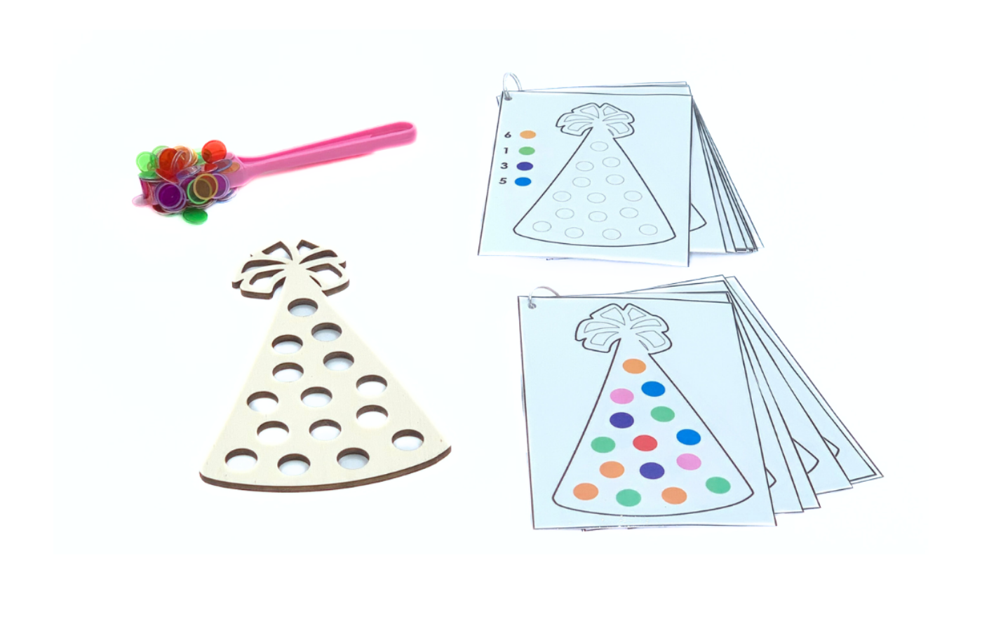 Fijnmotorisch spel met betrekking op ruimtelijke oriëntatie en rekenen. De kinderen versieren de feesthoed. Dit spelbord kan zowel gebruikt worden binnen het domein ruimtelijke oriëntatie als rekenen. Differentiatie is geïntegreerd in de 30 opdrachtkaarten.