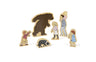 beer (afm. 16 x 16 cm), man en baby (afm. 6 x 17,5 cm), ouder meisje (afm. 5 x 12 cm), jonger meisje (afm. 4,5 x 10 cm), jongen (afm. 5 x 9 cm) en hond (afm. 8,5 x 5 cm).