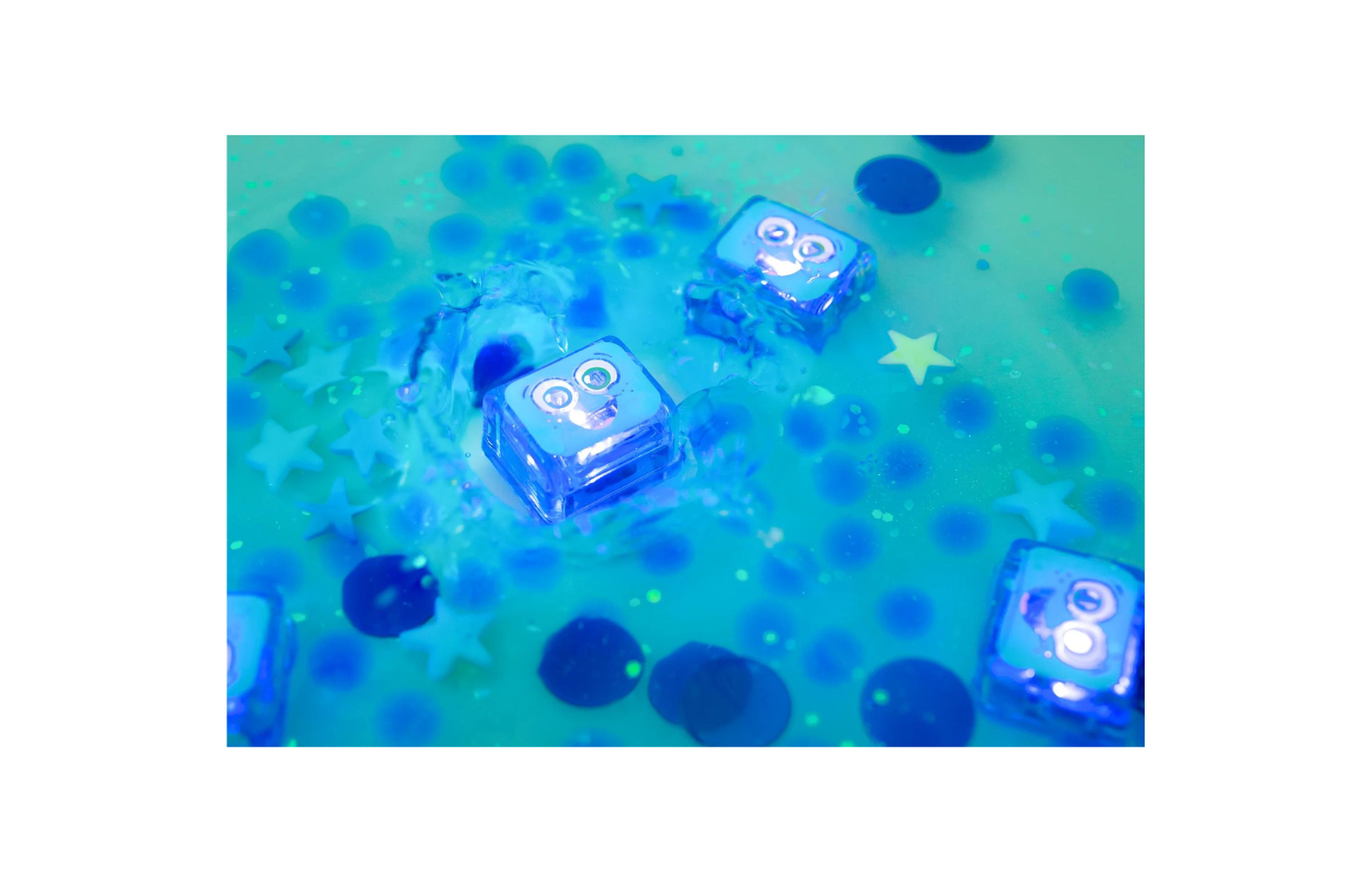 Het wordt nog leuker als je verschillende kubussen en figuurtjes in het water gooit, waardoor het water verschillende kleuren krijgt!