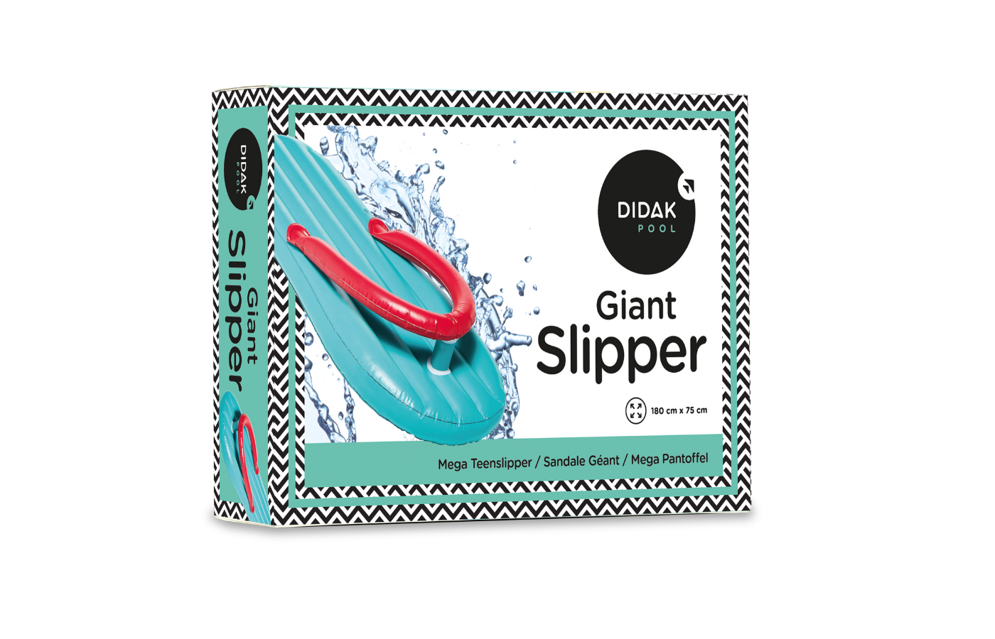 Deze opblaasbare teenslipper ziet er niet alleen hip uit, hij ligt ook fantastisch. Neem de teenslipper mee naar het zwembad of het strand om zalig te dobberen op het water. Inclusief reparatiepatch.