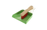 Borstel en blik te gebruiken voor kinderen. De borstel heeft een houten handvat en het blik is uit staal. De borstel en blik kunnen opgehangen worden met een touwtje.