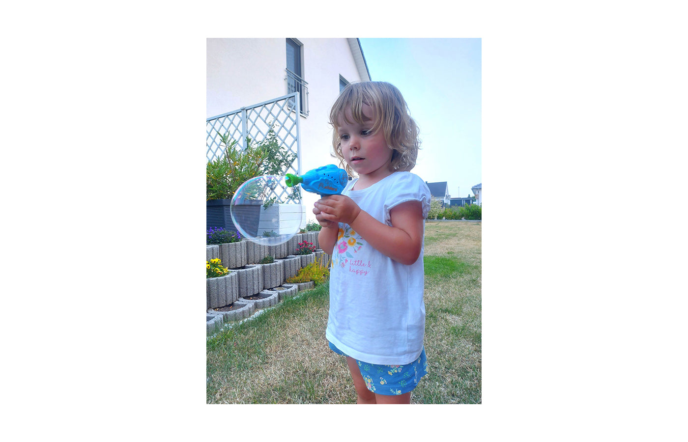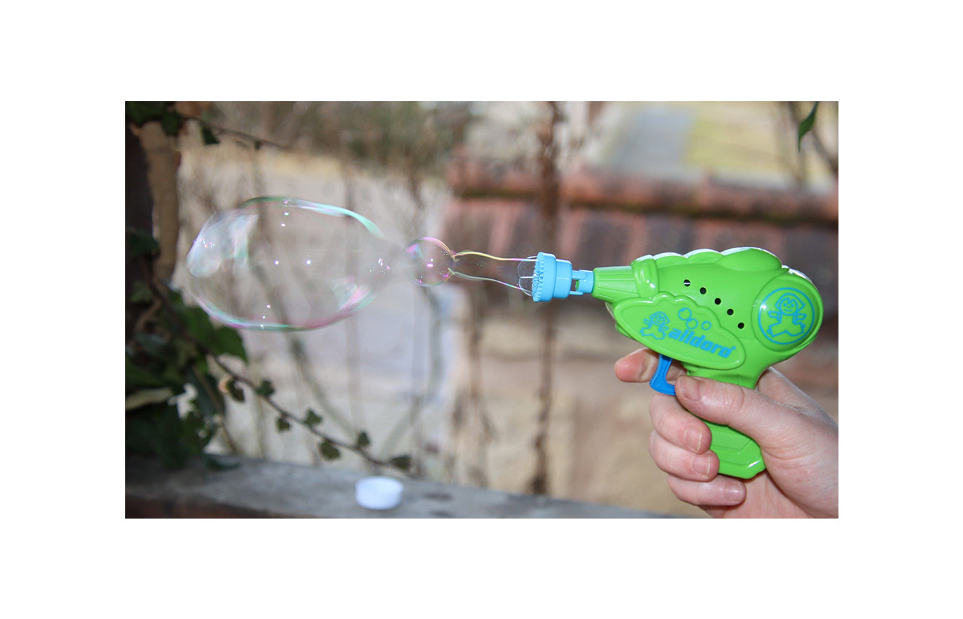Met een druk op de knop tover je in een mum van tijd kleurrijke, glinsterende zeepbellen tevoorschijn. Het werkt zonder batterijen. De bellen ontstaan door de trekker over te halen. Het bellenblaaspistool is gegarandeerd een hit op verjaardagsfeestjes.