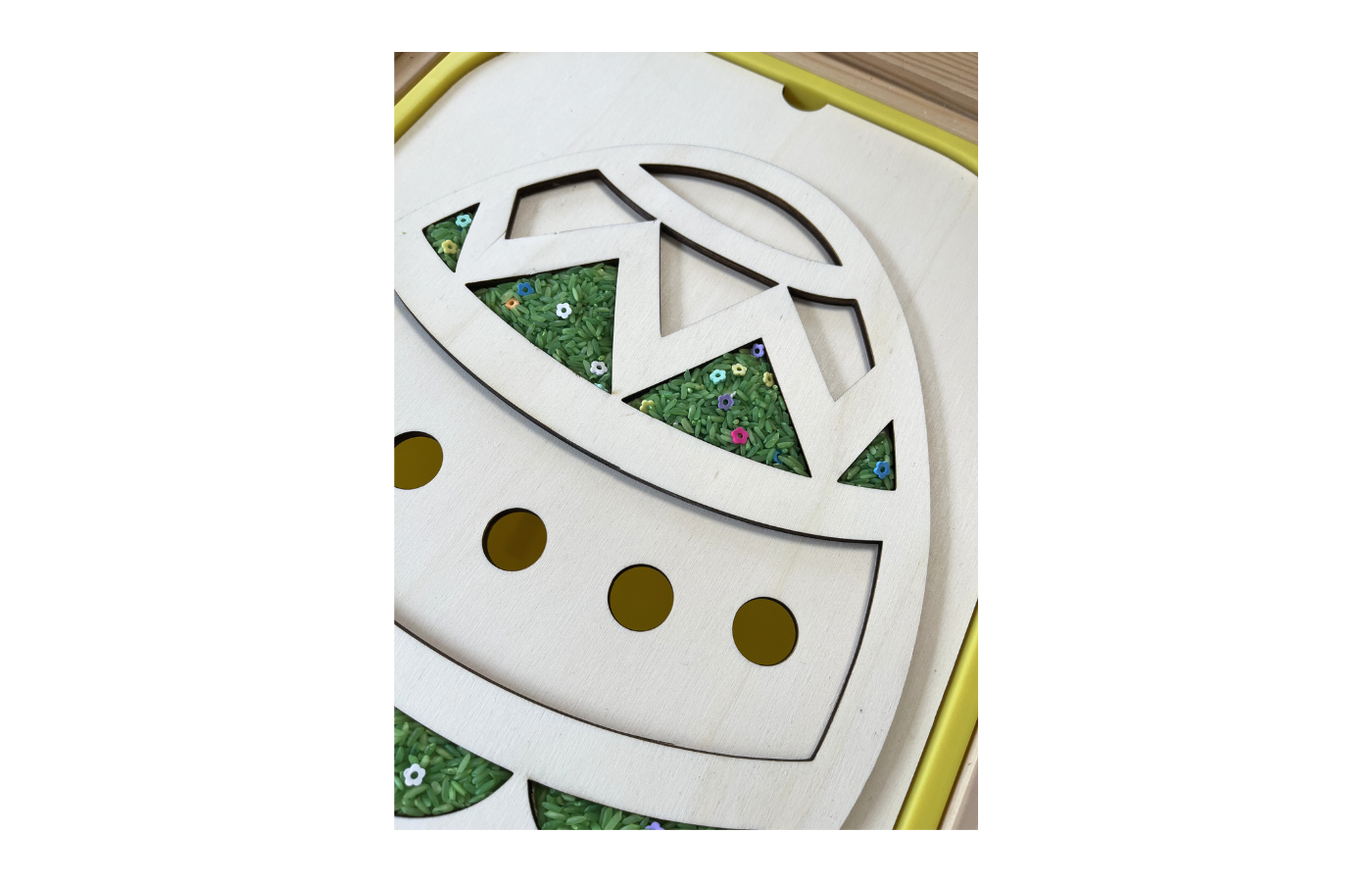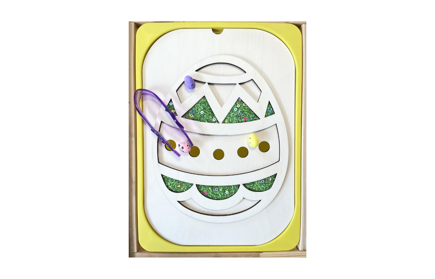 Breng Pasen tot leven met dit leuke multifunctioneel sensorisch themadeksel (eipatroon) te gebruiken op de gekende Trofastbakken van Ikea. Kinderen kunnen kleurrijke schuimrubberen eieren sorteren, vullen en ontdekken met speelrijst of ander sensorisch materiaal. Door te scheppen, grijpen en sorteren oefenen ze spelenderwijs hun fijne motoriek en concentratie.