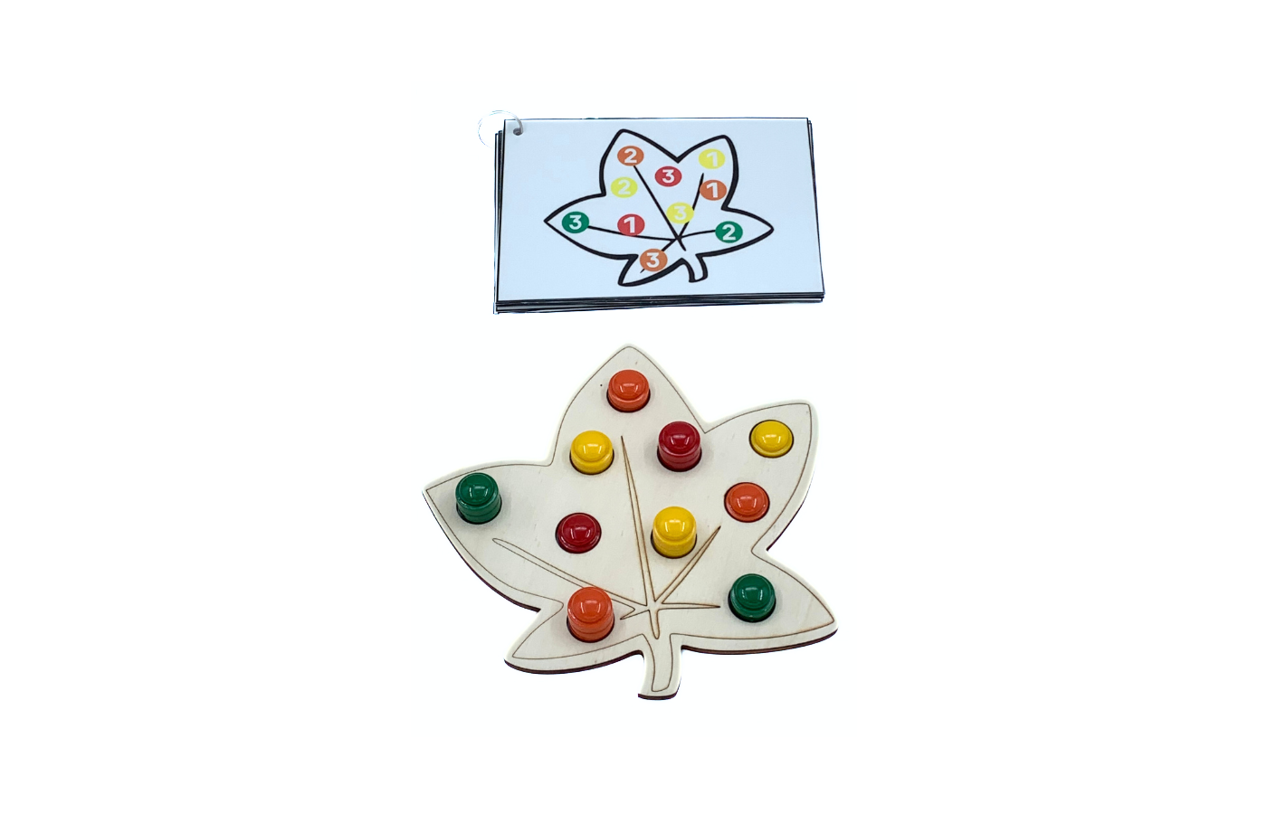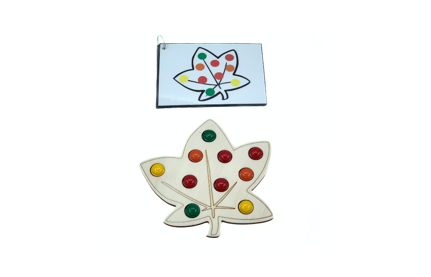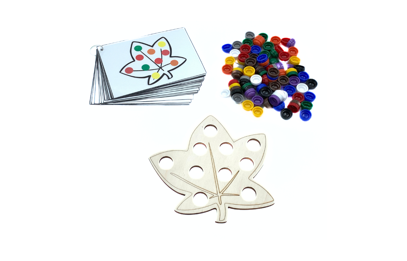 Spel met betrekking tot ruimtelijke oriëntatie, rekenen en fijne motoriek. De kinderen ordenen de stapeldopjes op het herfstblad op basis van opdrachtkaarten. Inclusief 100 gekleurde stapeldopjes (zwart, wit, blauw, geel, grijs, bruin, groen, oranje, rood en paars). Differentiatie is geïntegreerd in de 20 opdrachtkaarten. (zelf afdrukken en lamineren)