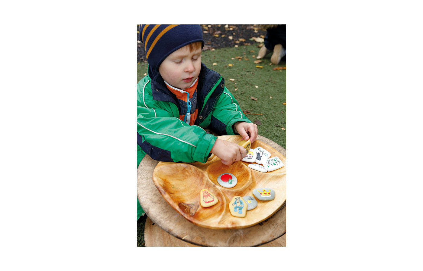 De stenen zijn gemaakt uit een hars/steen mix waardoor ze kunnen gebruikt worden in zand, aarde, water, gras,... overal waar jij het wil. Dit geeft extra mogelijkheden tot sensorisch spel en maakt het spelen met de stenen extra leuk en aantrekkelijk.