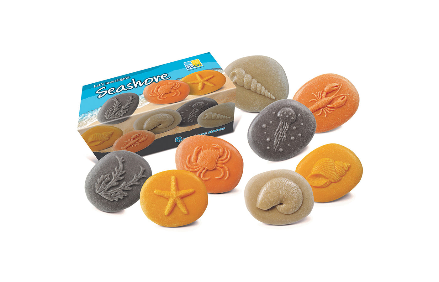 Laat je meevoeren naar de oceaan en verken de verleidelijke flora en fauna van de kust met deze tactiele stenen. Perfect om verschillende vaardigheden te stimuleren terwijl kinderen de afdrukken onderzoeken, vergelijken en sorteren. De stenen zijn gemaakt van een unieke steenmix. Ze zijn duurzaam en geschikt voor zowel binnenshuis als buitenshuis: in modder, zand, water of aarde. De stenen kunnen makkelijk worden schoongemaakt voor een volgend avontuur.