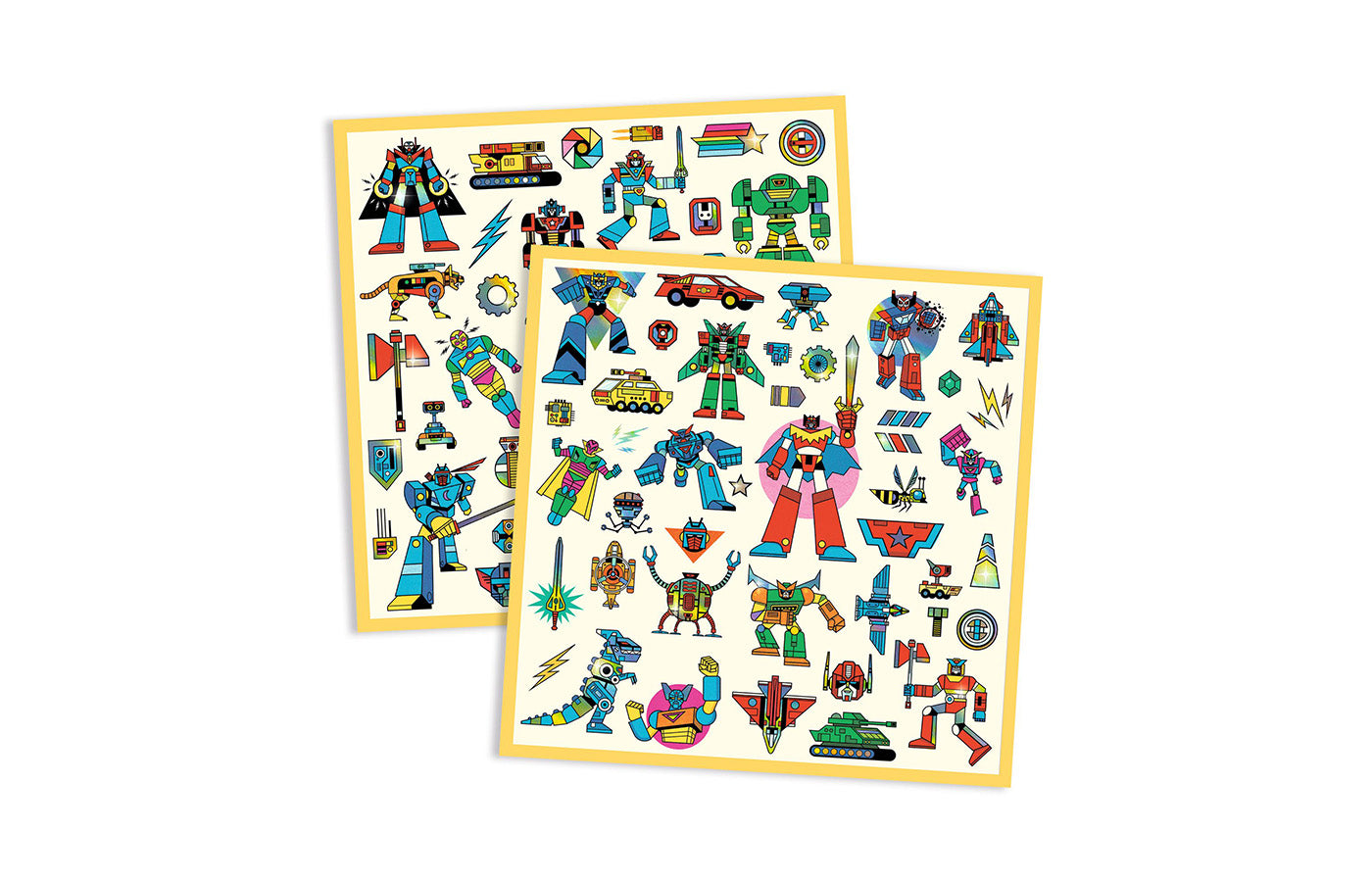 Set van 4 vellen met telkens 40 metallic stickers in het thema robots. Fleur je tekening, werkje op met deze gebruiksvriendelijke stickers. Stickers zijn 's werelds gemakkelijkste decoraties voor een betaalbare prijs.