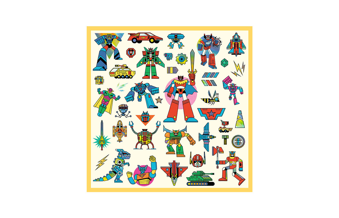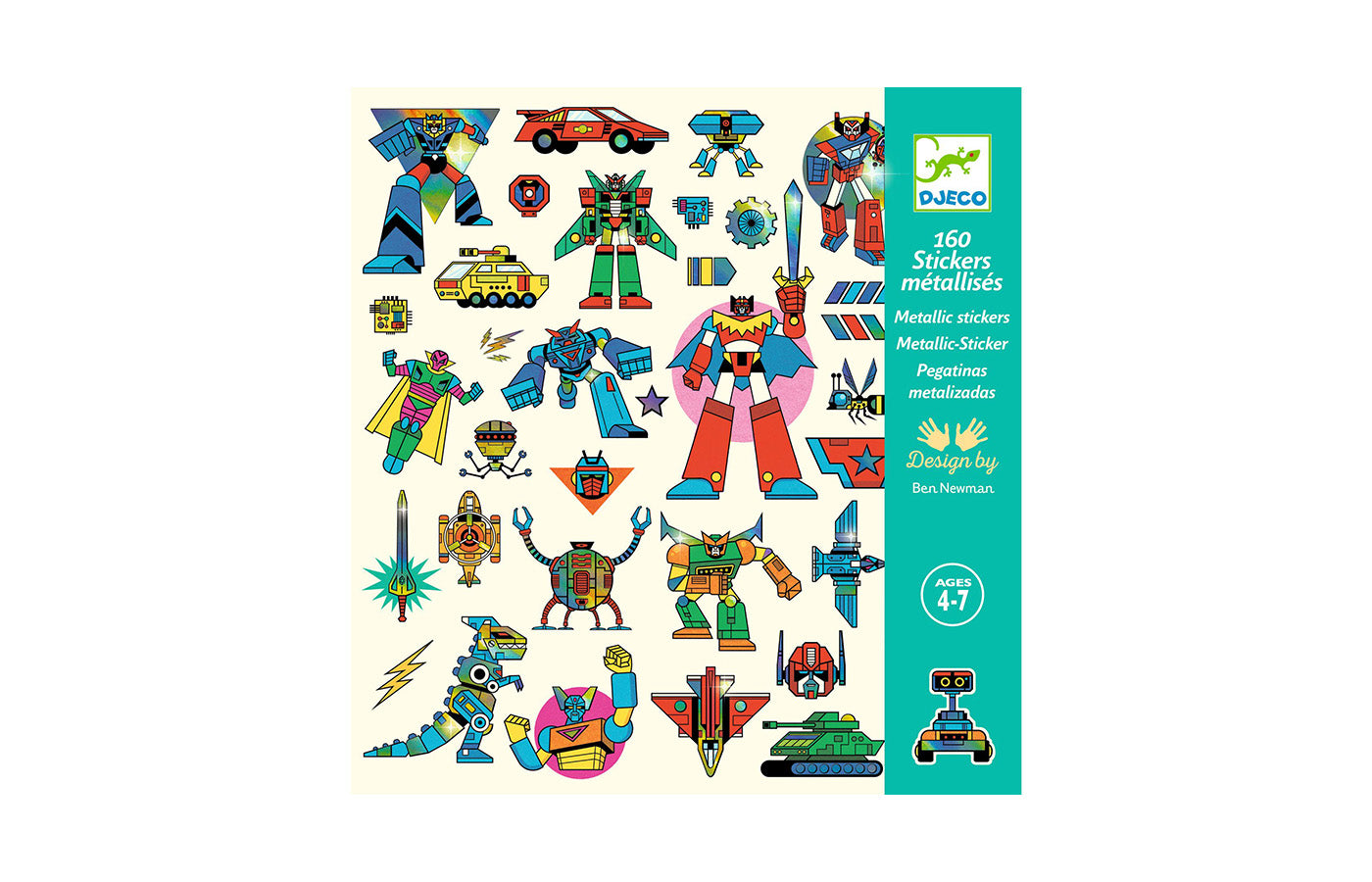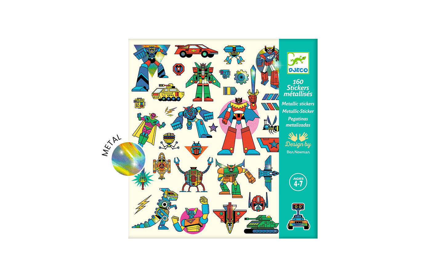 160 metallic stickers - robots (4 vellen - 2 x 2) (afm. verpakking 22 x 23 cm)
