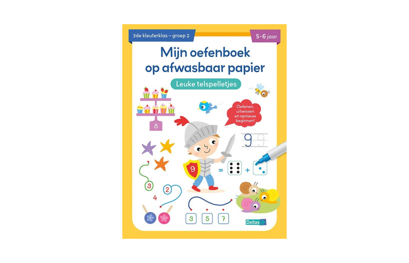 Mijn oefenboek op afwasbaar papier. Leuke telspelletjes (5-6 j.)