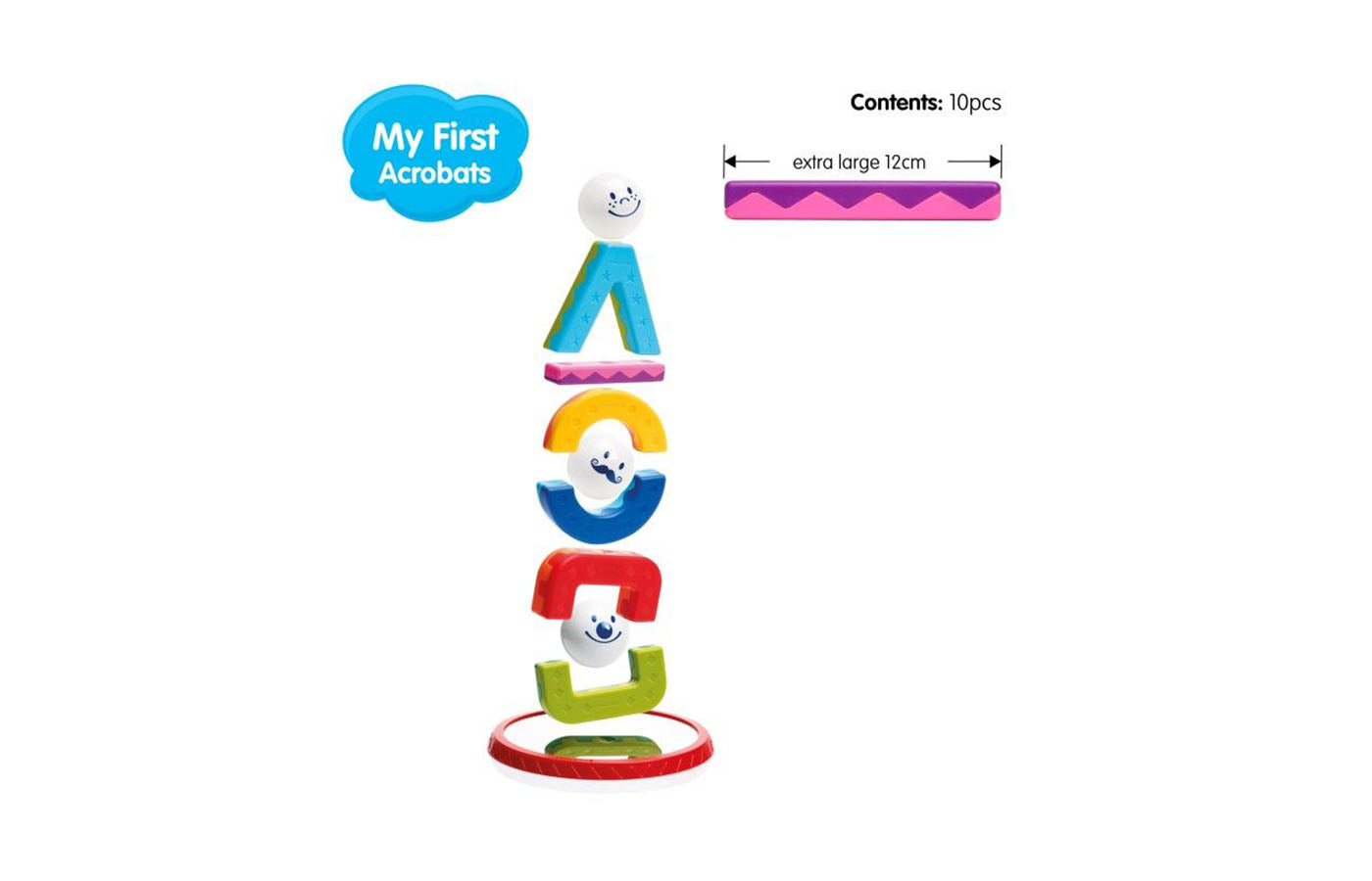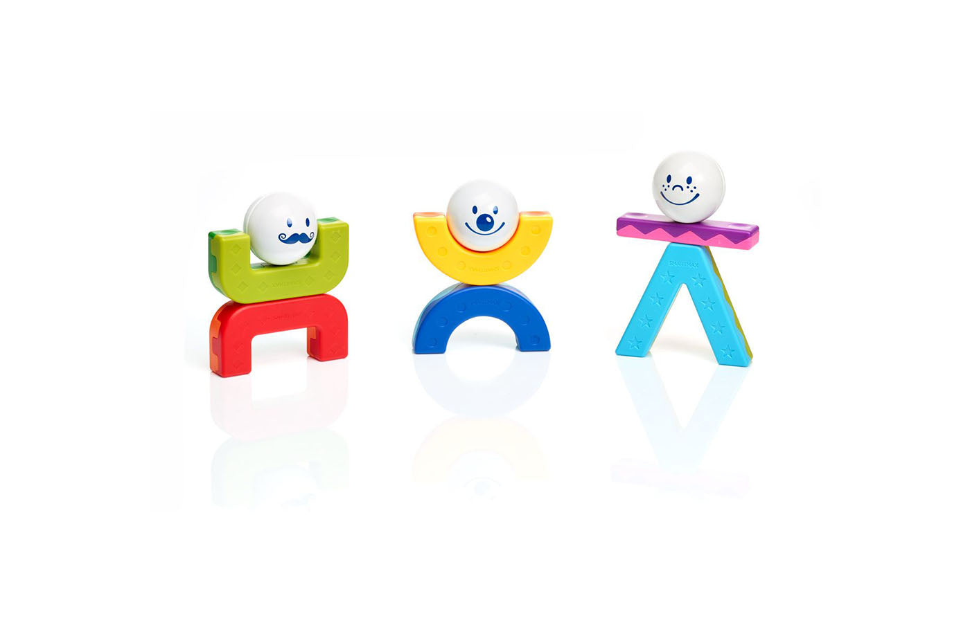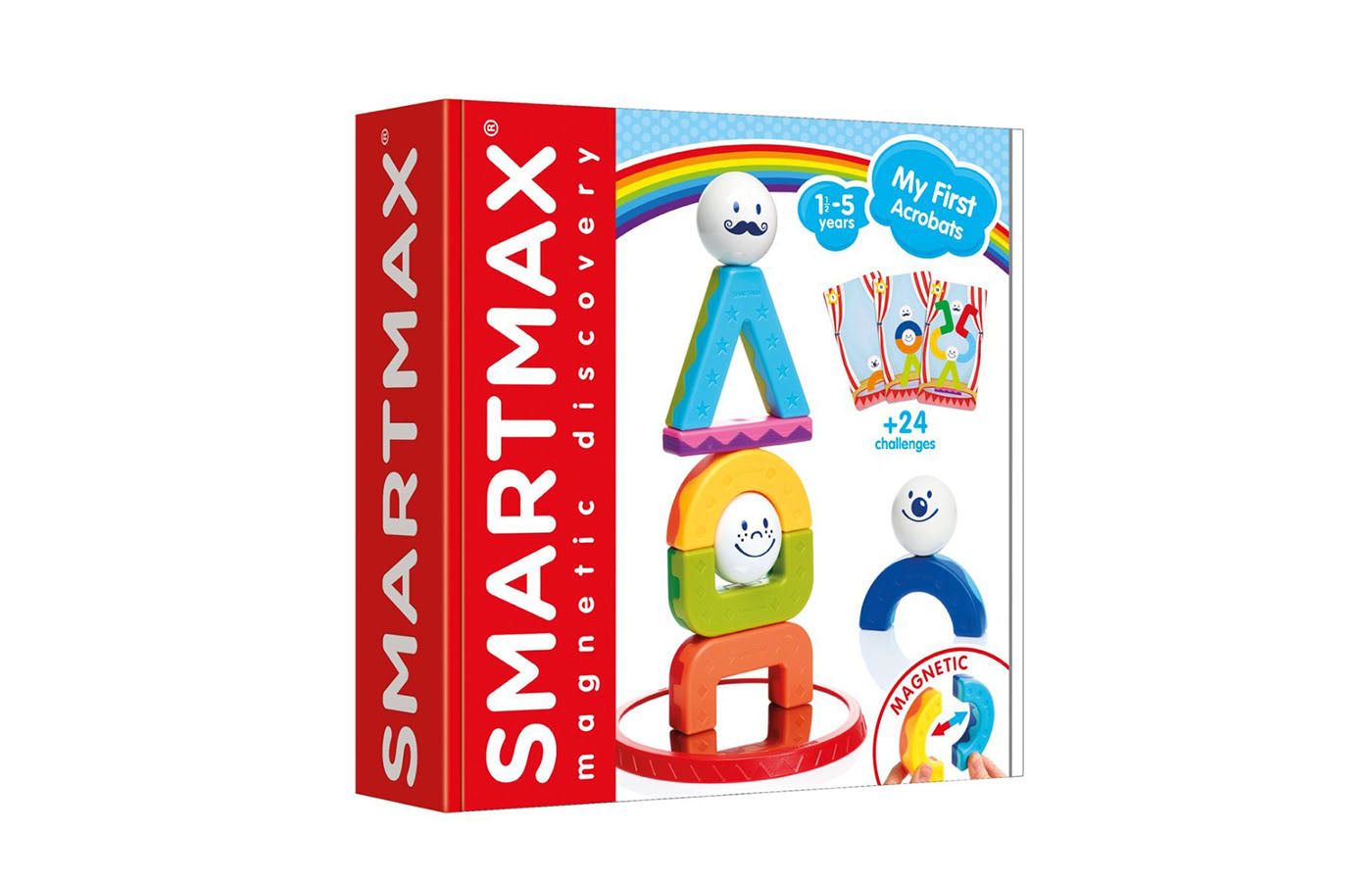Als je deze vormen gaat mixen en de metalen ballen toevoegt, verschijnen de coolste acrobatische figuren. Creëer je eigen acrobatische structuren of probeer de structuur te bouwen zoals op één van de opgavekaarten. De rode basis heeft een metalen oppervlak wat de nodige stabiliteit geeft bij het bouwen van de acrobatische constructies.
