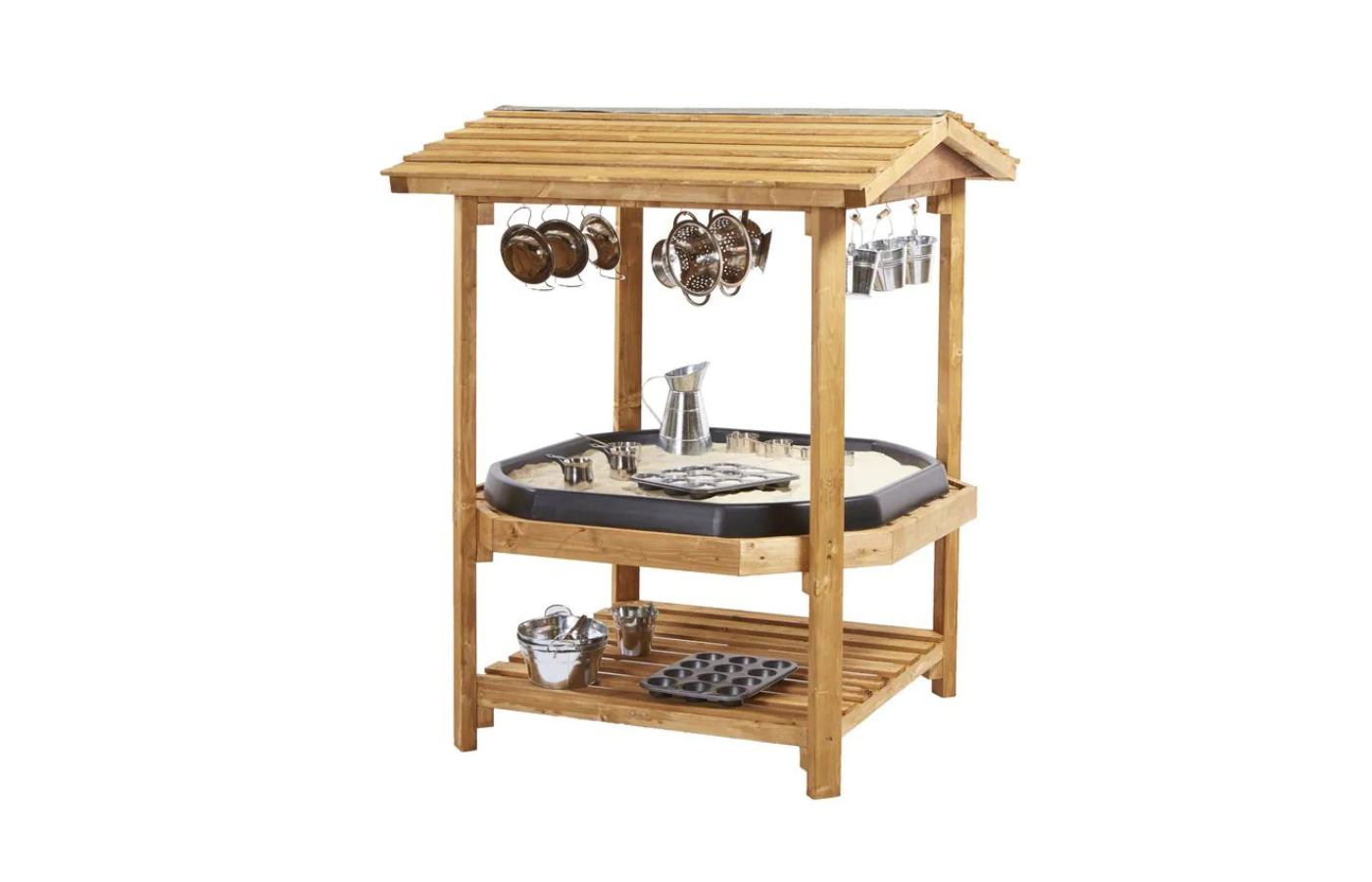 Deze overdekte Tuff Tray stand is een veelzijdige toevoeging aan elke buitenleerruimte. Het biedt zekerheid voor zintuiglijk spel en educatieve verkenning. Met een ruim platform en geïntegreerde overkapping bevordert hij het hele jaar door buitenspelen en thema-activiteiten, waardoor het een centraal punt voor creativiteit en plezier wordt.