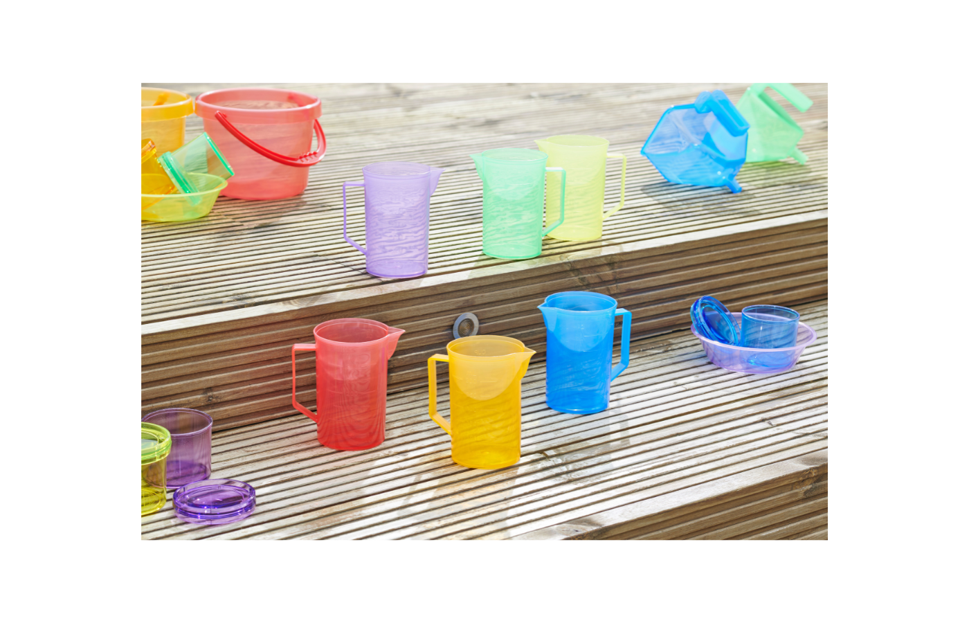 Deze transparante maatbekers zullen uw kind eindeloos plezier bezorgen, omdat ze de perfecte maat hebben voor kleine handen om te dragen en te gieten. Ideaal voor rommelig spel, het verkennen van zand- en waterpret, het transporteren van verschillende materialen om te onderzoeken, leren over meten en volume en voor kleurmatching.
