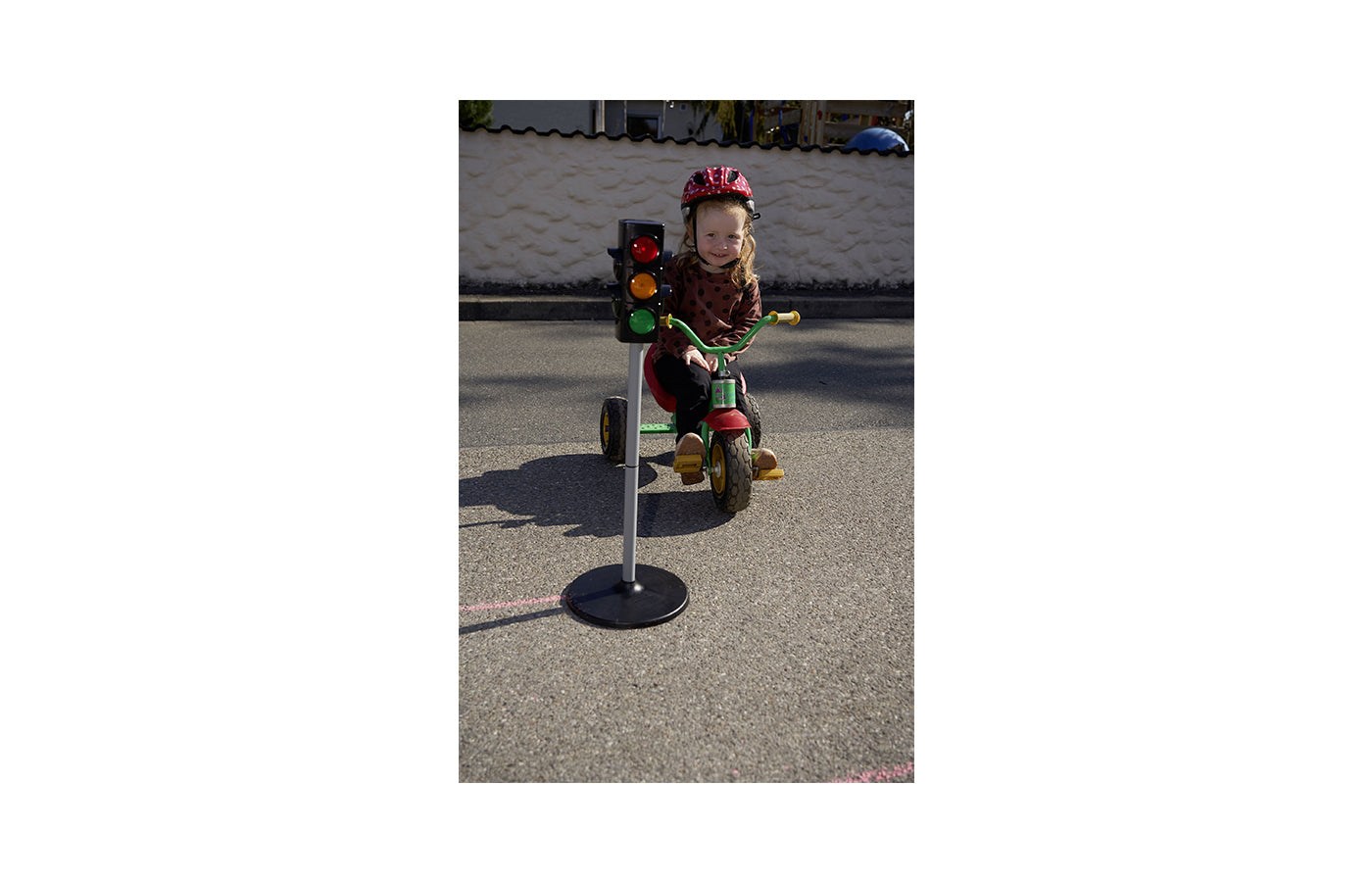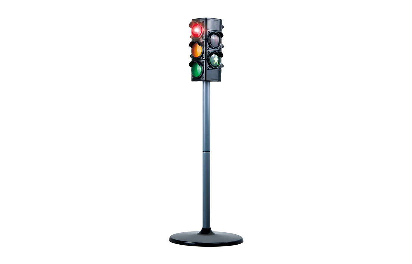 Met deze op batterijen werkende verkeerslichten leren kinderen spelenderwijs de belangrijkste regels bij de verkeerslichten. Het 75 cm hoge verkeerslicht kan automatisch of handmatig worden bediend. Door de verschillende standen is het verkeerslicht geschikt voor zowel het oefenen van de realistische volgorde, als voor het oefenen van specifieke situaties. Dankzij de in elkaar te klikken onderdelen is het verkeerslicht in een handomdraai in elkaar gezet. Te combineren met de verkeersborden en het verkeerslicht.