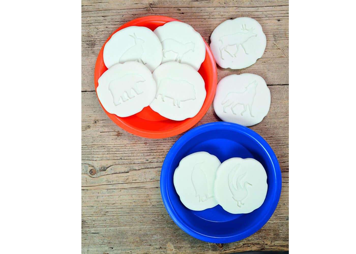 Deze (voet)afdrukken prikkelen gegarandeerd de nieuwsgierigheid van kinderen en spreken tot de verbeelding. Elke steen toont aan de ene kant de voetafdruk van een dier en aan de andere kant het dier zelf. Perfect om vroege onderzoeksvaardigheden aan te moedigen terwijl kinderen de acht voetafdrukken onderzoeken, vergelijken en sorteren. Kinderen zullen genieten van het maken van afdrukken en het vergelijken van de verschillende vormen van de voetafdrukken en van de kenmerken van de dieren. Ze zijn gemaakt van een unieke steenmix. De stenen zijn duurzaam en geschikt voor zowel binnenshuis als buitenshuis: in modder, zand, water of aarde.