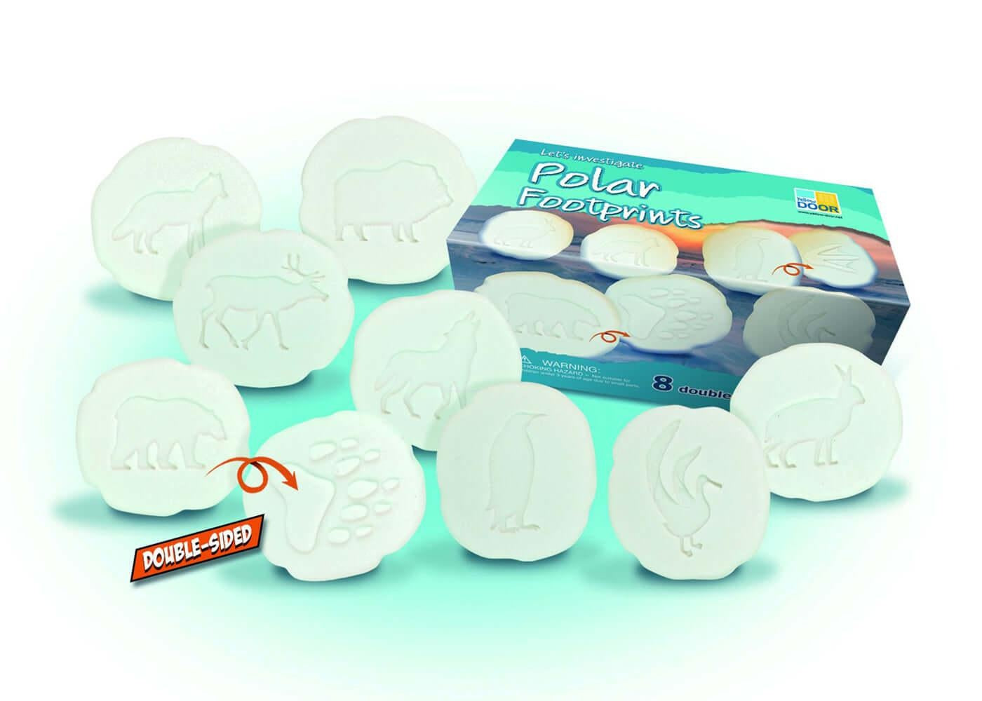 8 dubbelzijdige stenen met (voet)afdrukken - noordpool (afm. 9 x 6 cm)