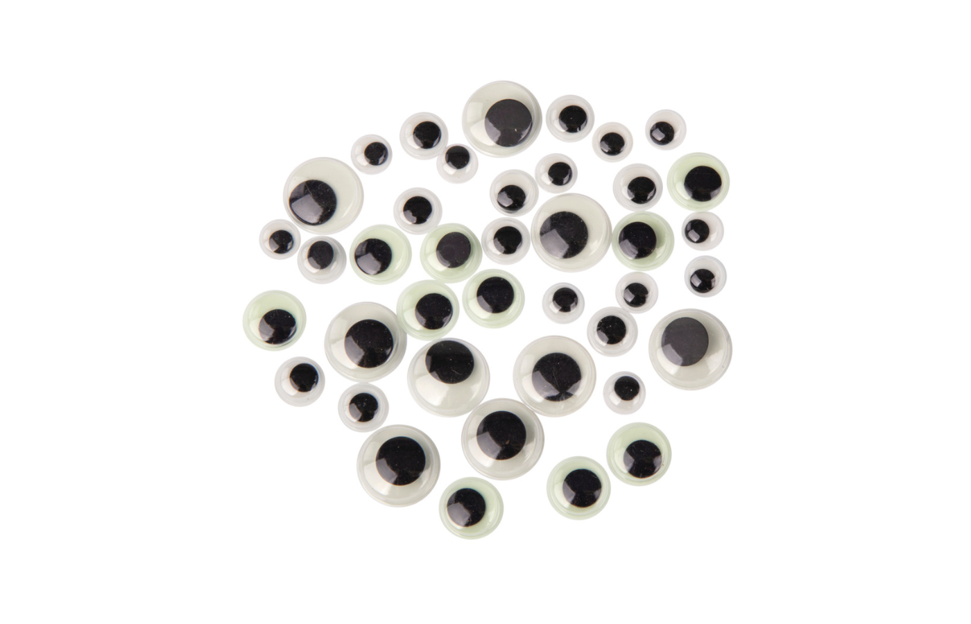 Pakket met 40 zelfklevende wiebelogen in 4 verschillende maten.