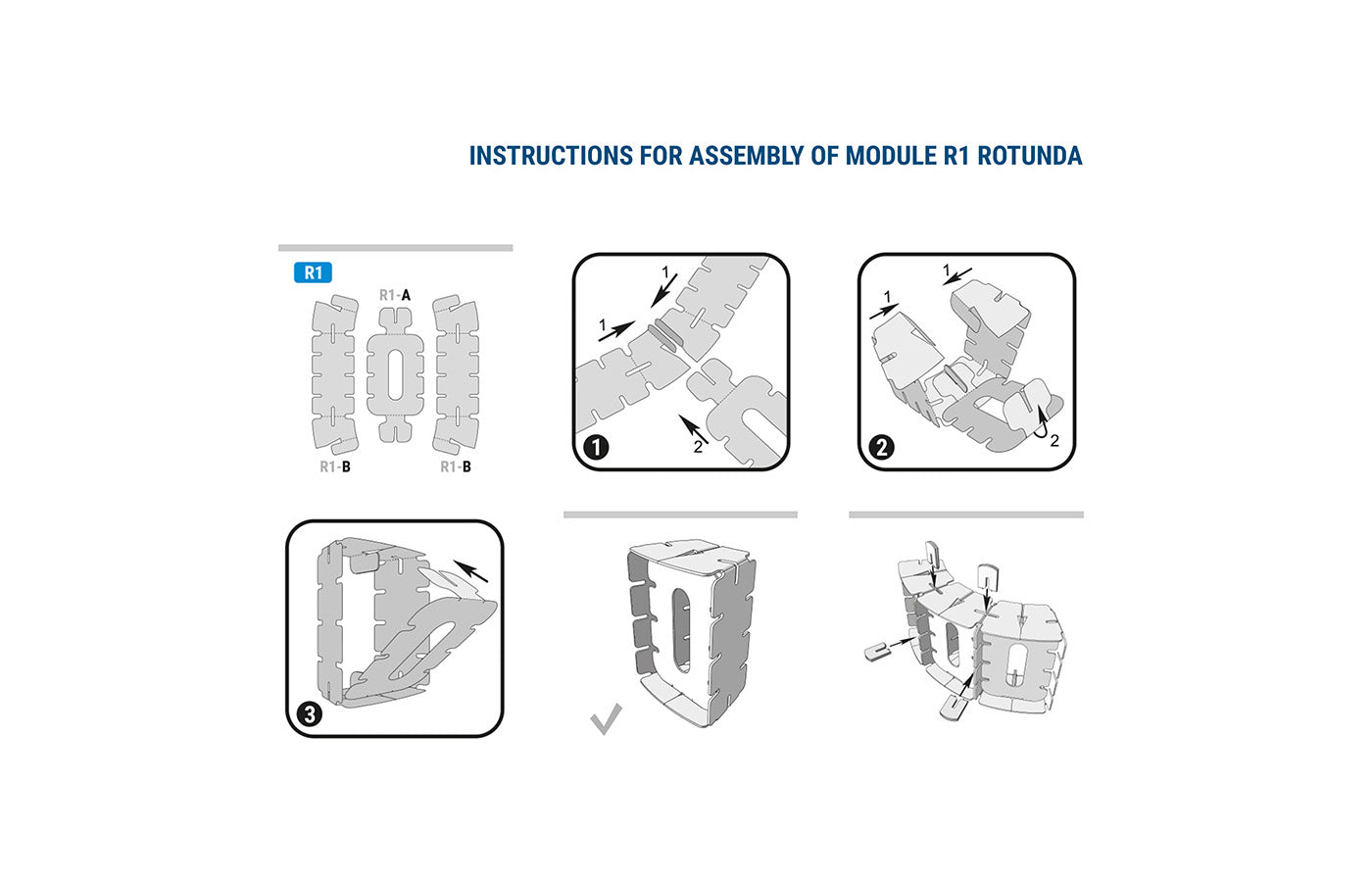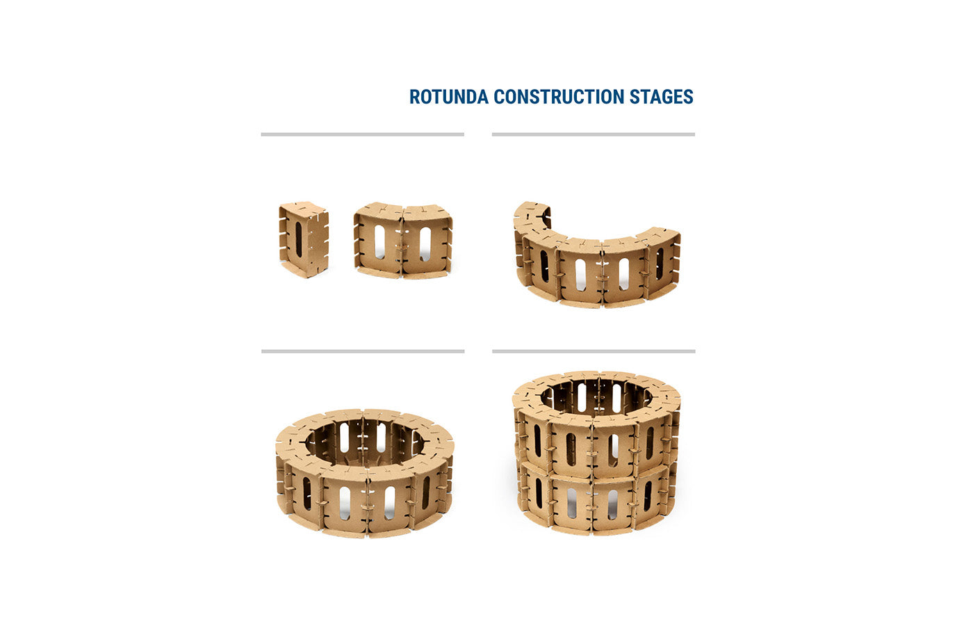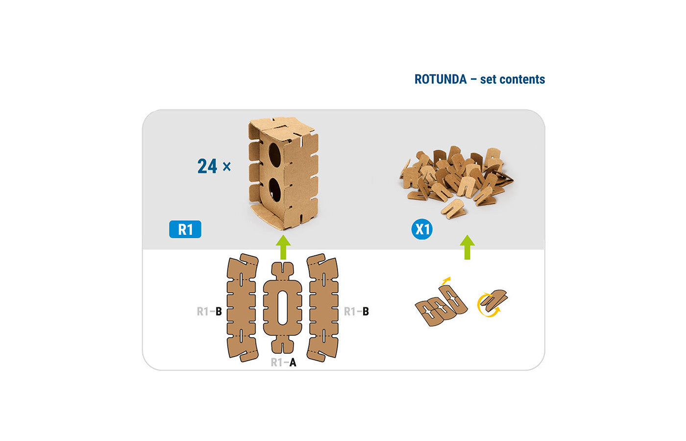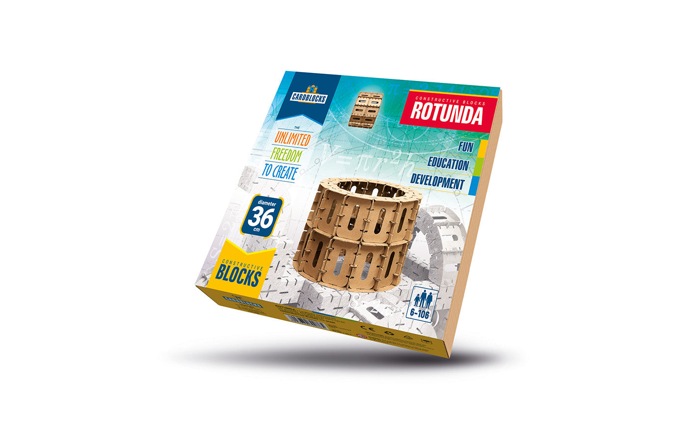 Les Card Blocks sont des blocs en carton à assembler soi-même. La combinaison d'un Block avec un design original et un Connector particulier offre des possibilités inédites pour construire des formes spatiales. La rotonde montée a un diamètre de 36 cm. Combinez différents ensembles pour créer des constructions encore plus spectaculaires.