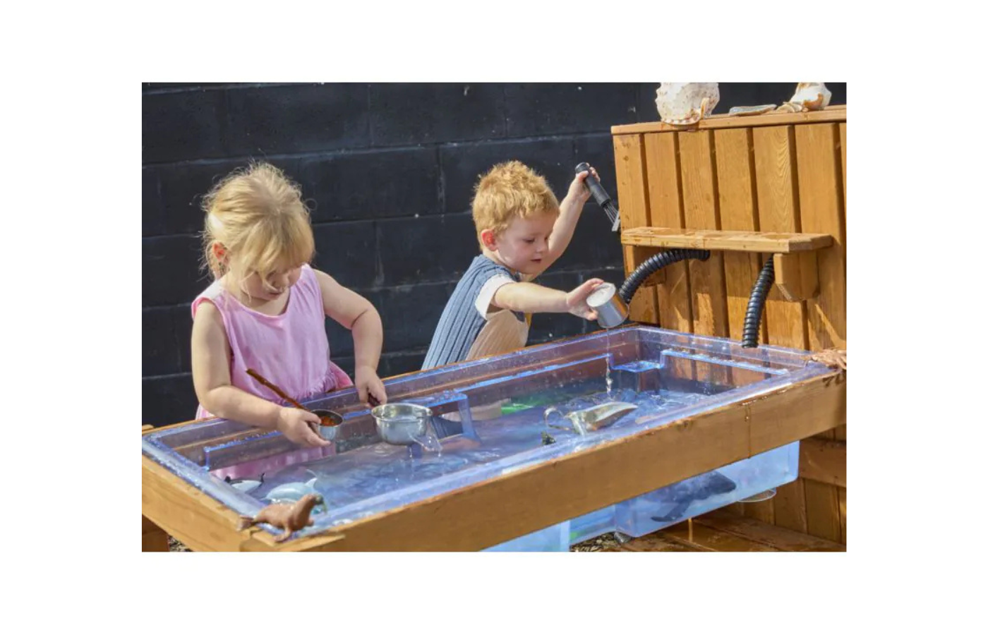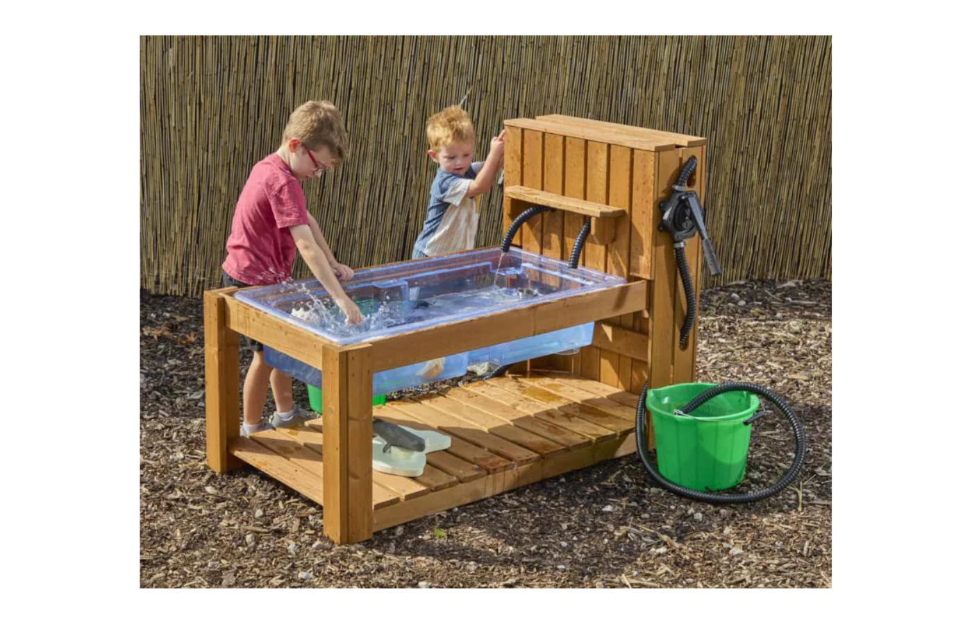 Dankzij de ruime waterbak zijn de speelmogelijkheden eindeloos: gieten, pompen, experimenteren en fantasierijk spelen gaan hier hand in hand. De twee pompen zorgen voor extra uitdaging en maken samen spelen nog leuker. Ondertussen trainen kinderen ongemerkt hun spierkracht en coördinatie.