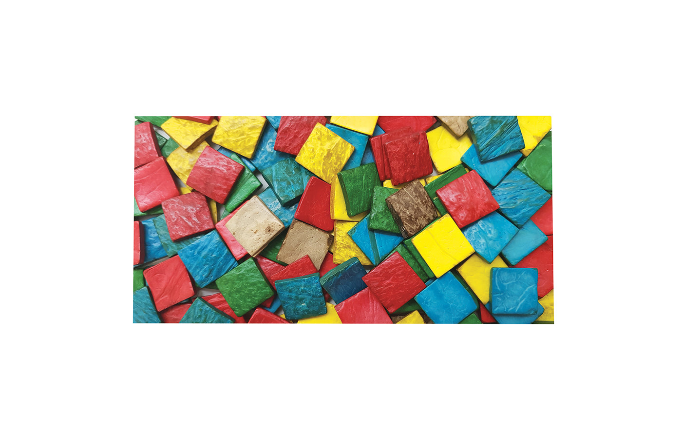 Un sachet de 150 g de coques de noix de coco - carrés de différentes couleurs. À utiliser comme décoration, pour compter ou pour bricoler.